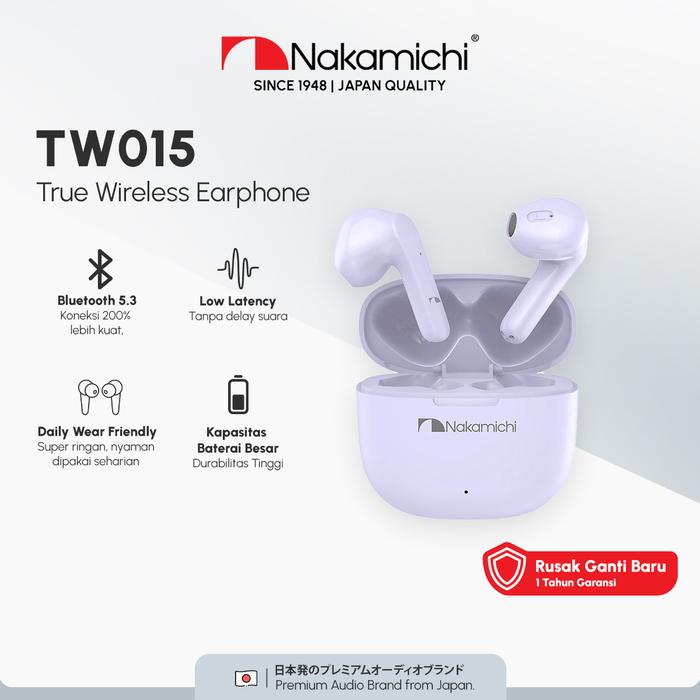 NAKAMICHI TW015 TWS EARPHONE LOW LATENCY GAMING HD EARBUDS BLUETOOTH MIC - HITAM