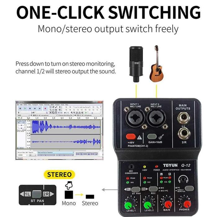 TEYUN SOUND CARD USB MINI PORTABLE 2 WAY DRIVER FREE MIXER - Q12 - WARNA, HITAM