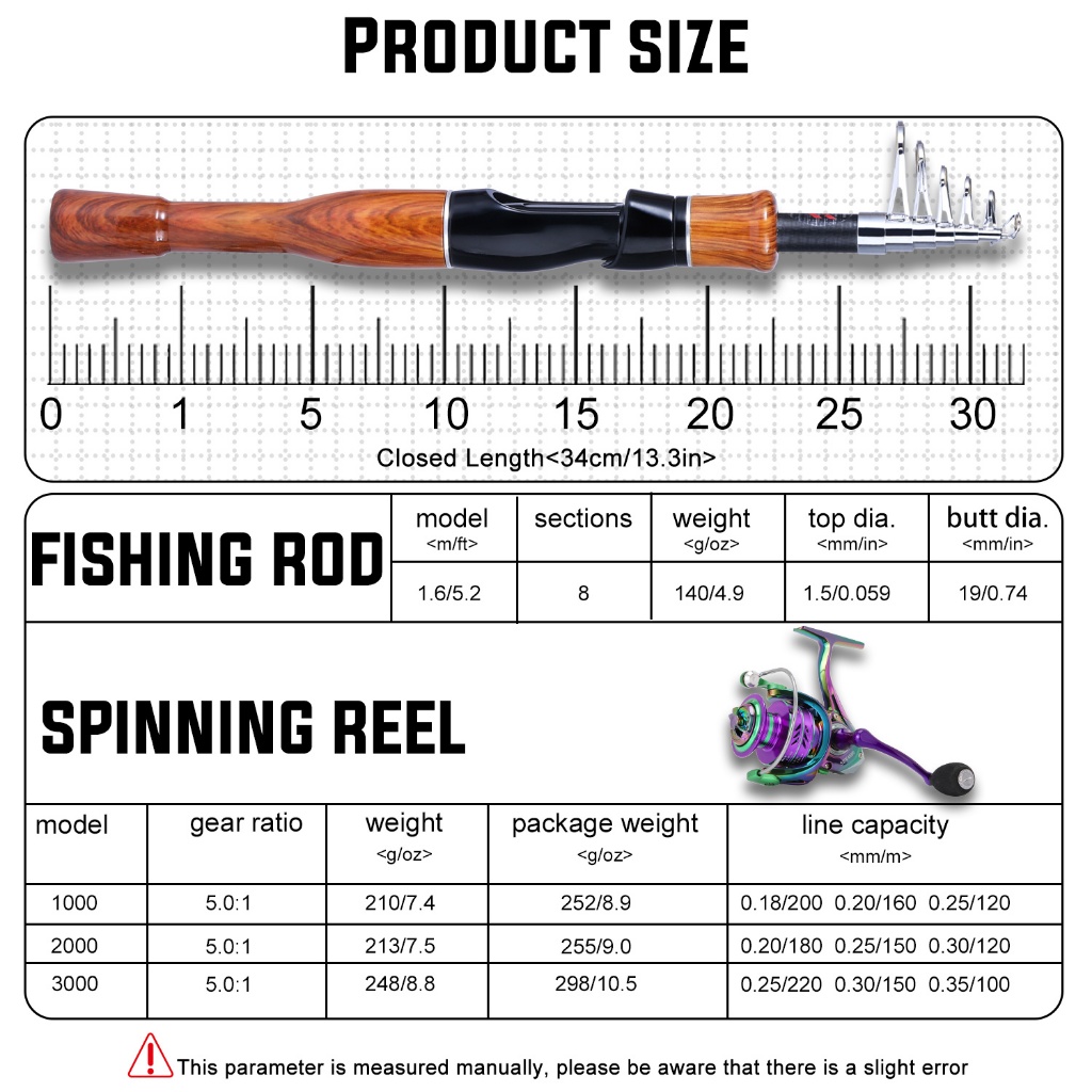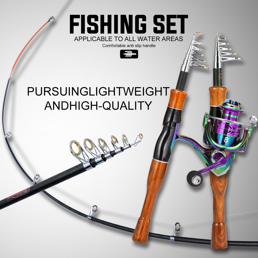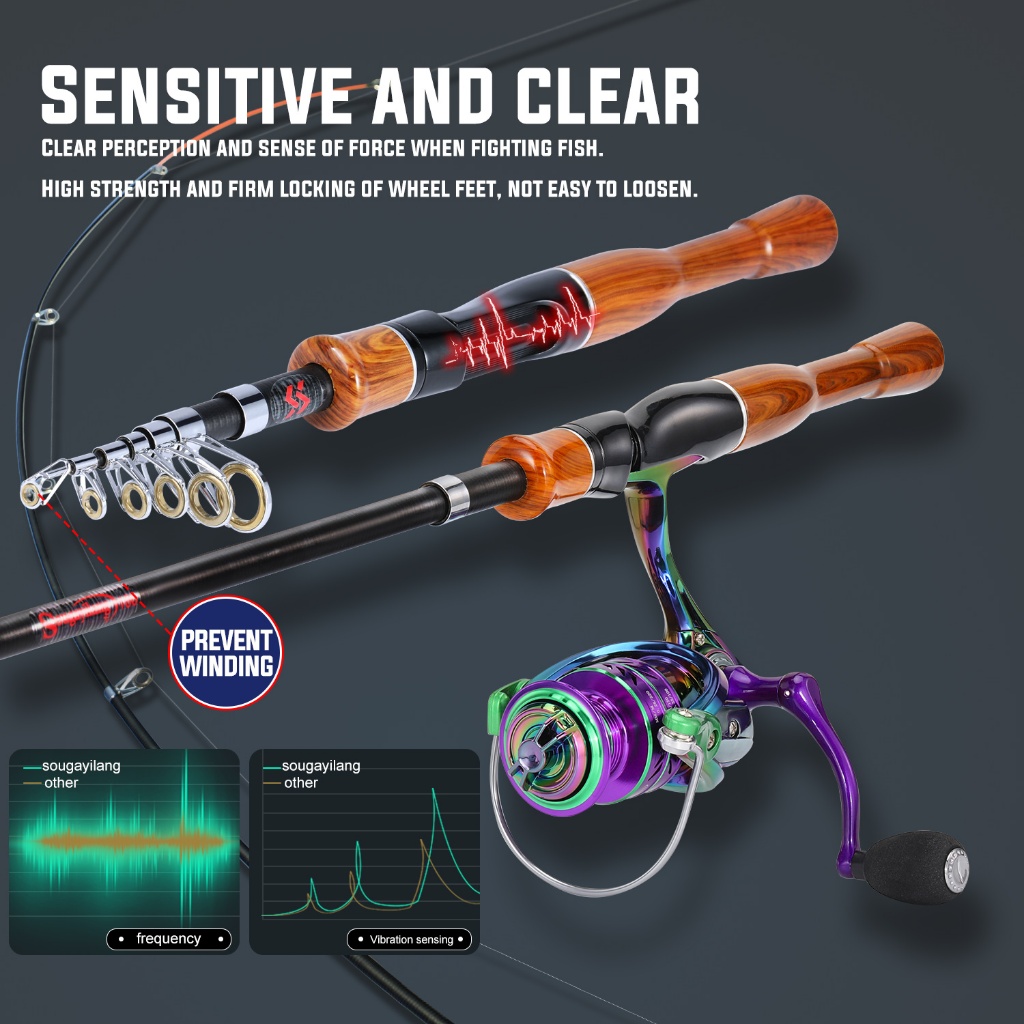 Sougayilang 1.6m Telescopic Fishing Rod Reel Line Combos 5.0:1 Metal Fishing Reel Power Handle Max Drag 10kg