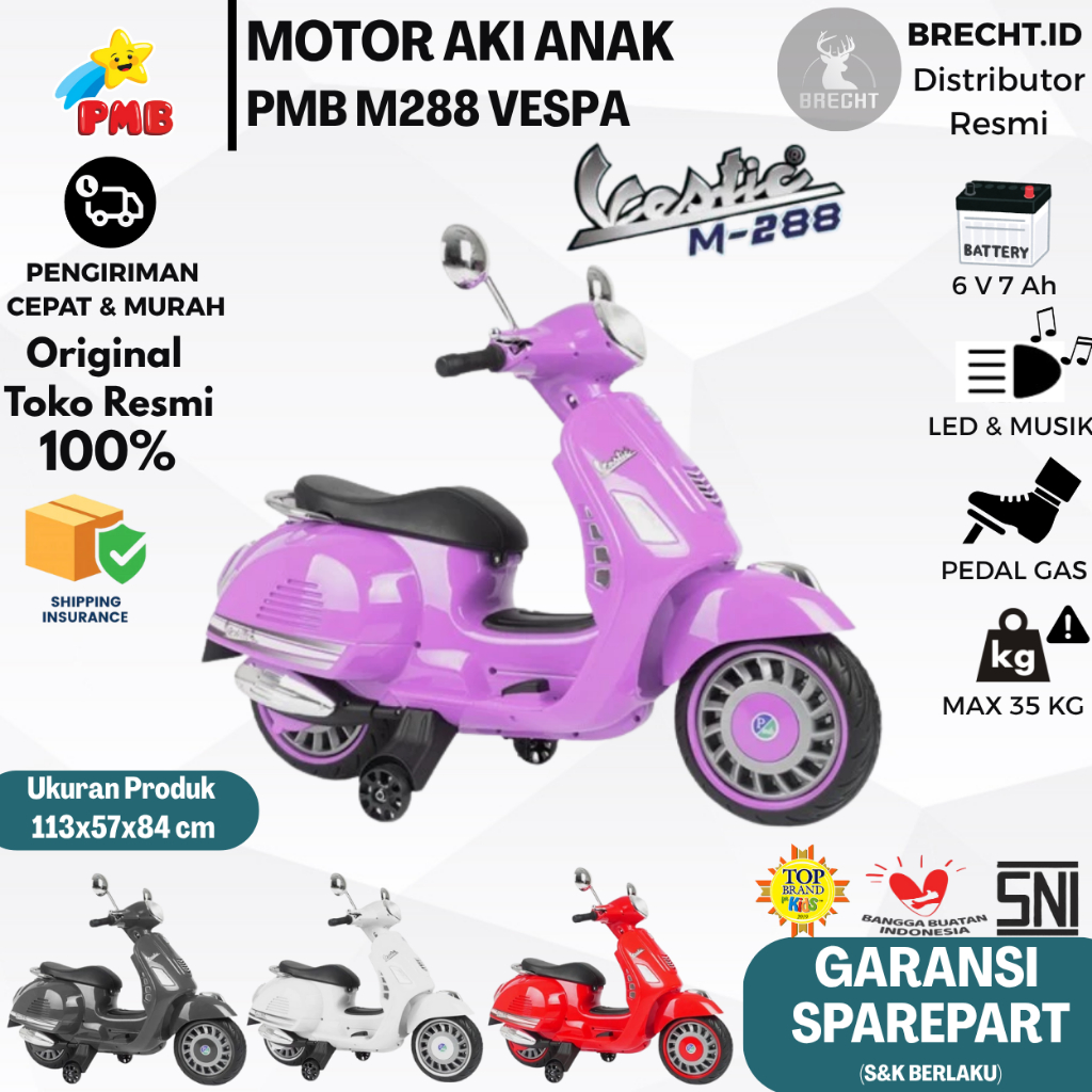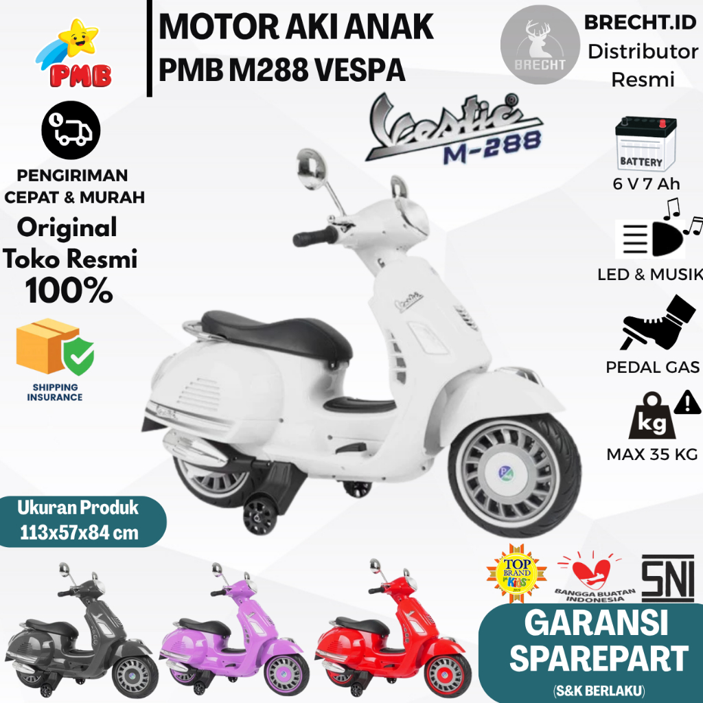 MOTOR AKI ANAK MURAH JUMBO MAINAN MOTOR VESPA PMB M 288 ORIGINAL TERMURAH BEST SELLER PROMO TANPA DP