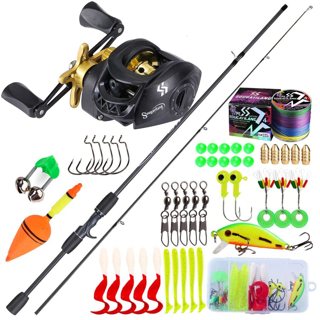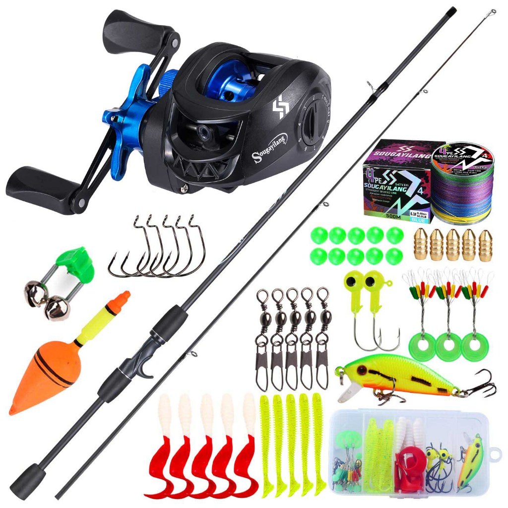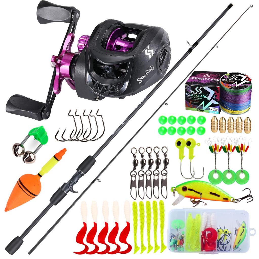 Joran Pancing Fishing Rod Set 1.8m 2 Section Casting Rod with Baitcasting Fishing Reel 7.2:1 Gear Ratio with Line Lure
