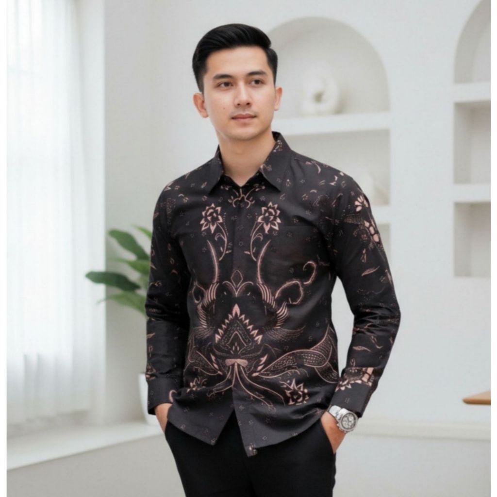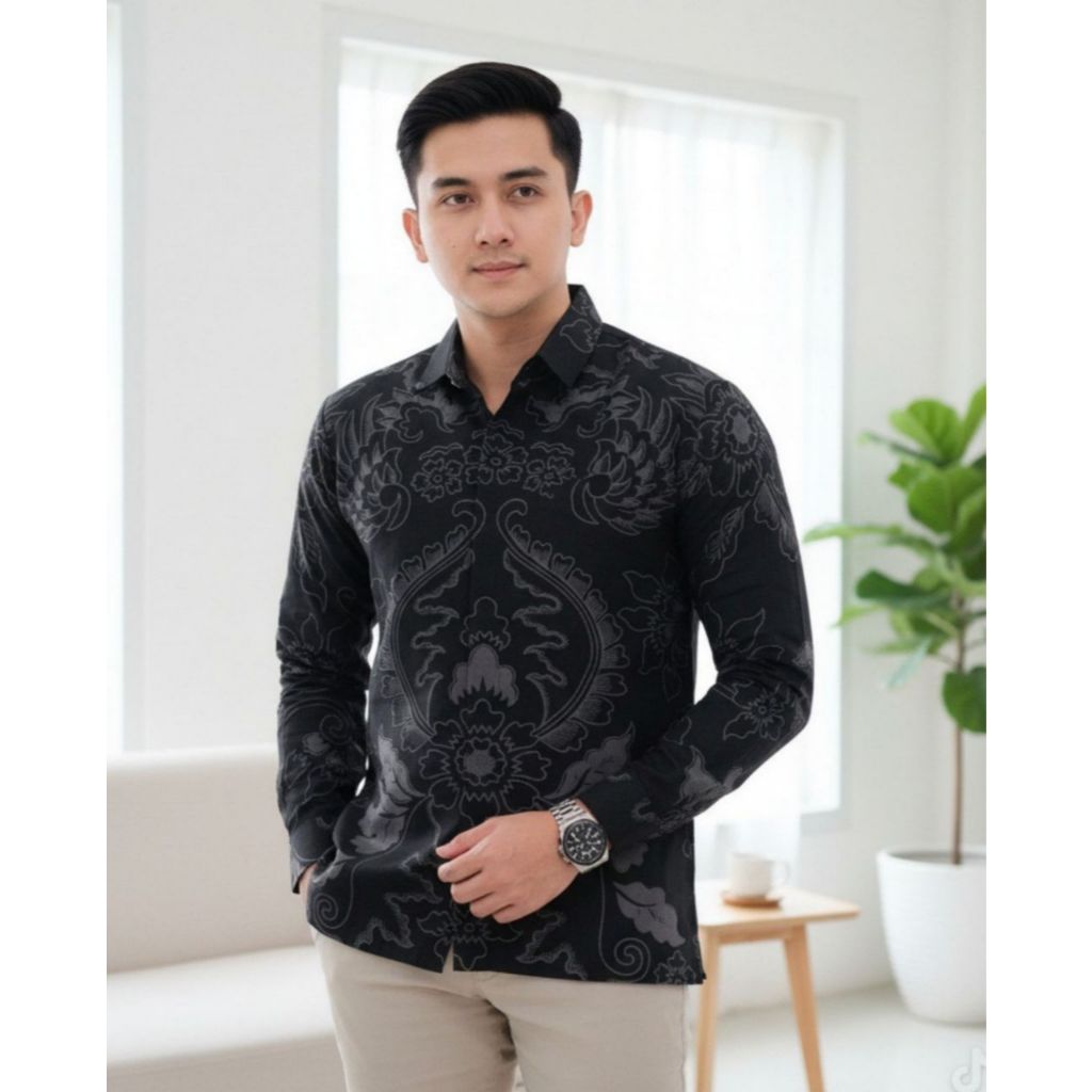 Kemeja Batik Pria Modern Lengan Panjang Casual Modis Slim Fit Trendy Masa Kini OL 162