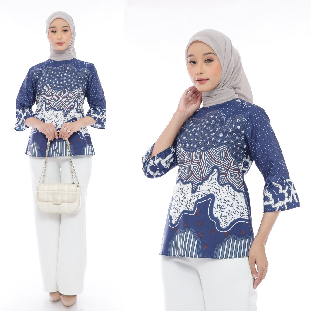 Atasan Wanita Blouse Batik Ukuran M L XL XXL Terbaru Kekinian Modern Kantor Formal Kerja Wanita Modern || Lengan Lonceng