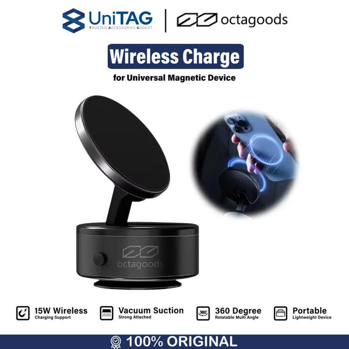 PHONE HOLDER STAND MAGNETIC MAGSAFE + WIRELESS CHARGER OCTAGOODS FOR IPHONE SAMSUNG - STAND BLACK