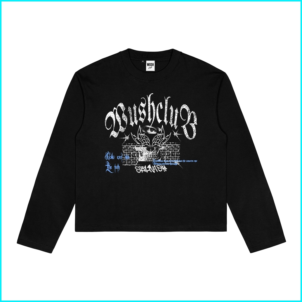 Wush Club Baju Kaos Boxy Longsleeve Pria Wanita Oversize Lengan Panjang Nexo Hitam