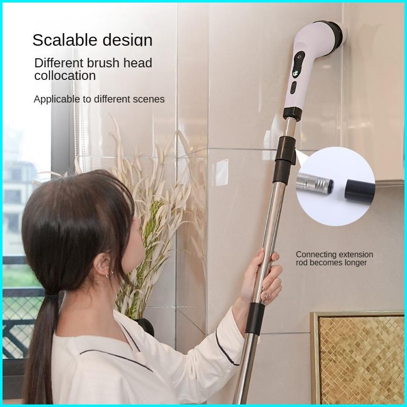 Electric Spin Scrubber Sikat Pembersih Tanpa Kabel 9 Kepala Gagang Dapat Disesuaikan Cleaning Brush