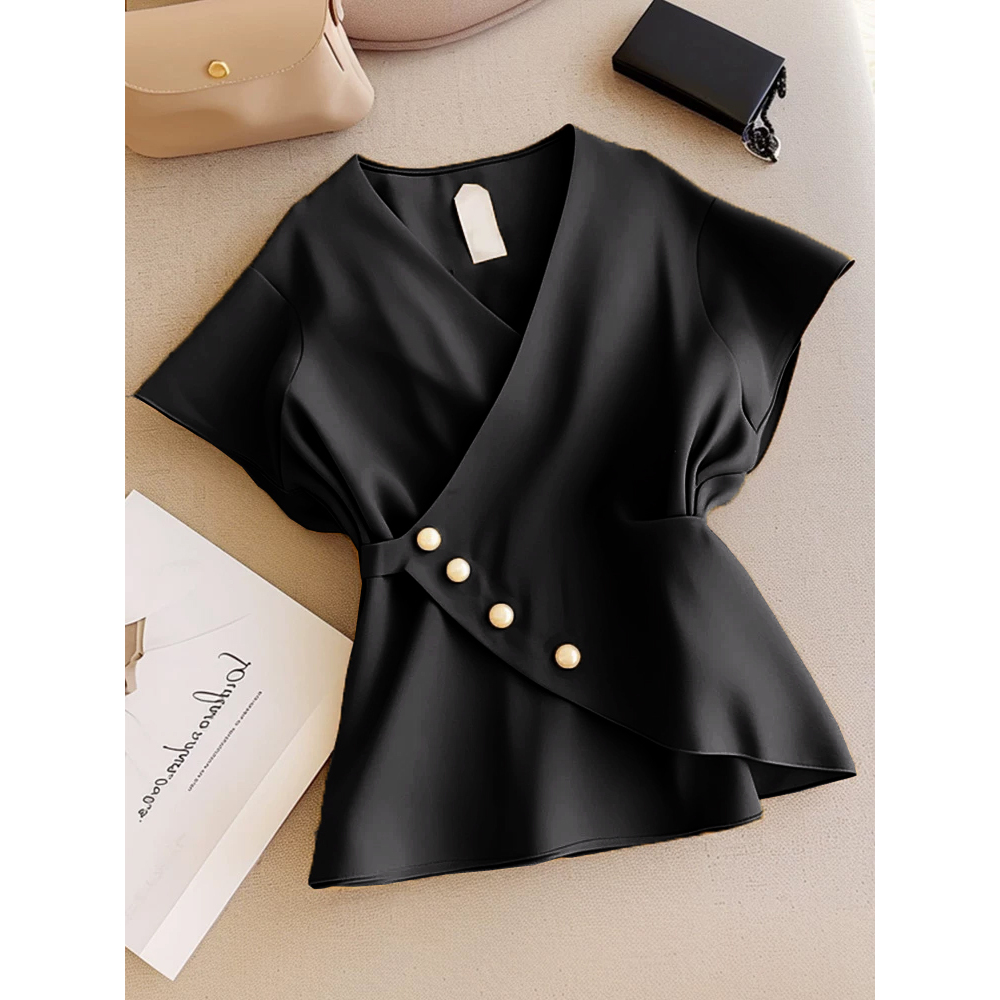 FWG Atasan Wanita Korean Style Baju Blouse kasual Wanita Blouse Atasan Lengan Pendek Polos Gaiha Top