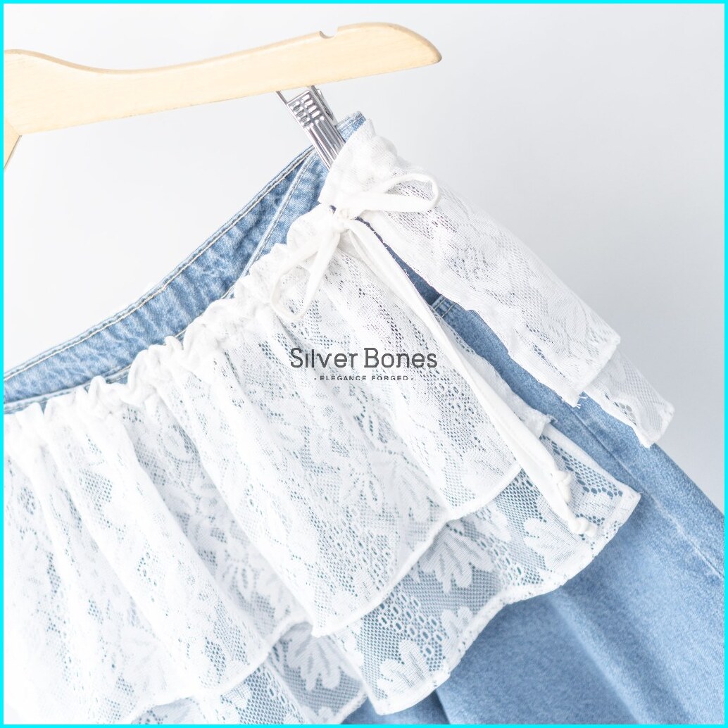 Silver Bones - Fei Curtain Skirt L Rok Renda Korean Style Kerudung Pinggul Lace Layered Wrap Skirt