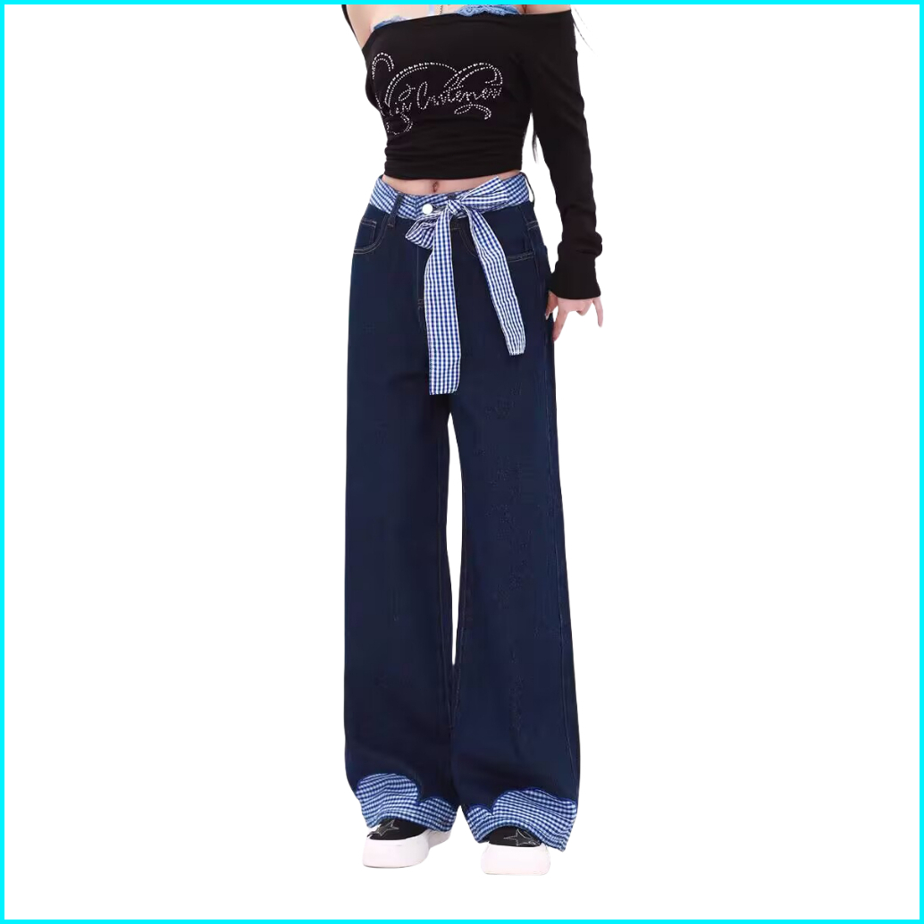 Katermen Jeans Wanita - Jeans Pinggang Tinggi - Celana Kaki Lebar Dengan Dasi Kupu-kupu-celana Denim