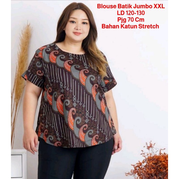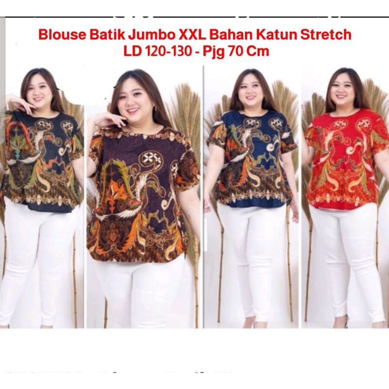 Baju Blouse Batik Jumbo XXL/Batik Atasan Wanita Katun Stretch Big Size