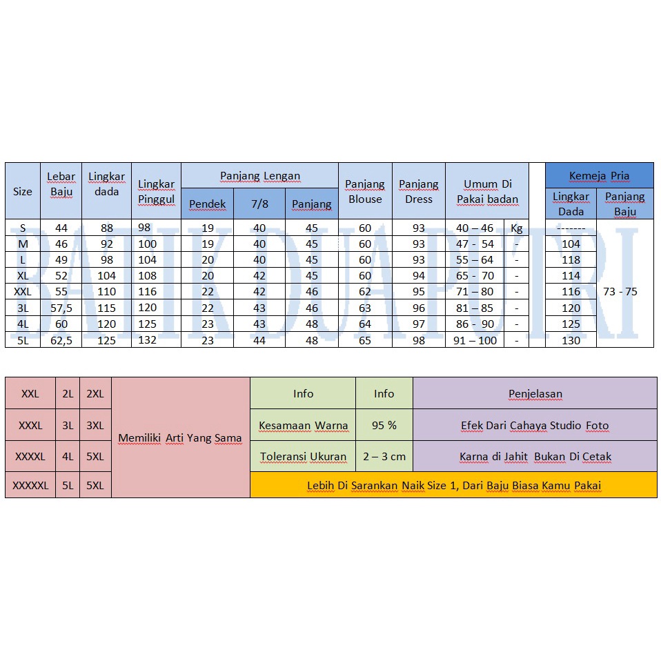 S, M, L, XL, XXL, 3L, 4L, 5L