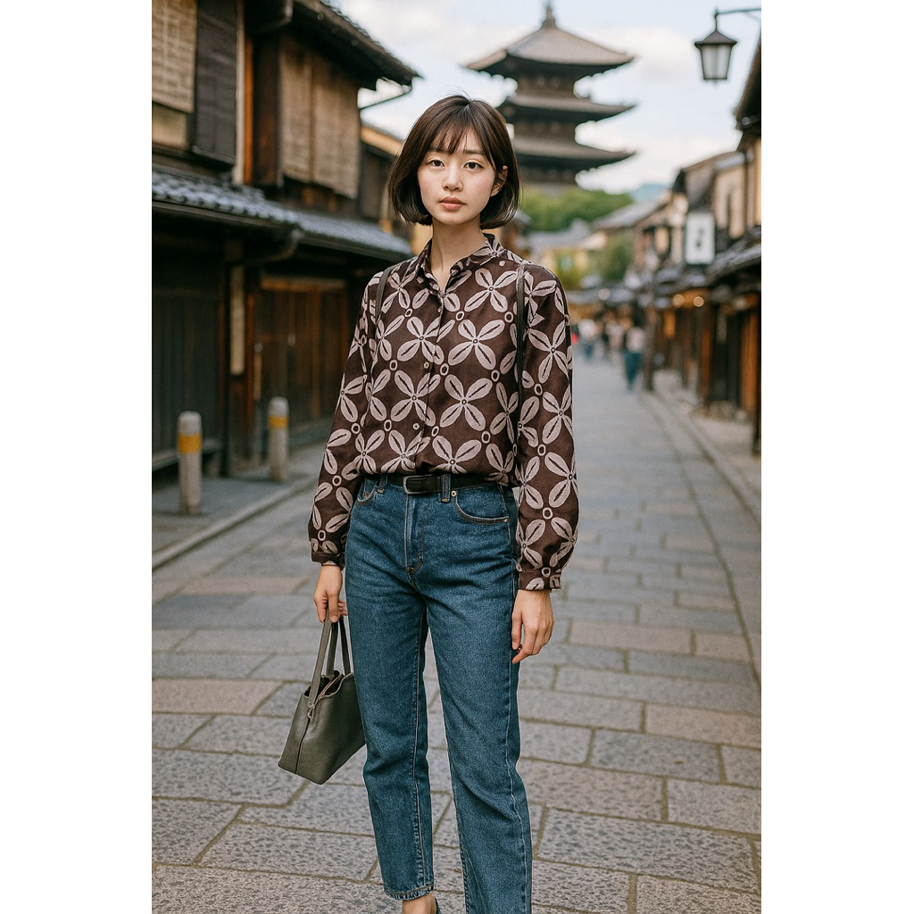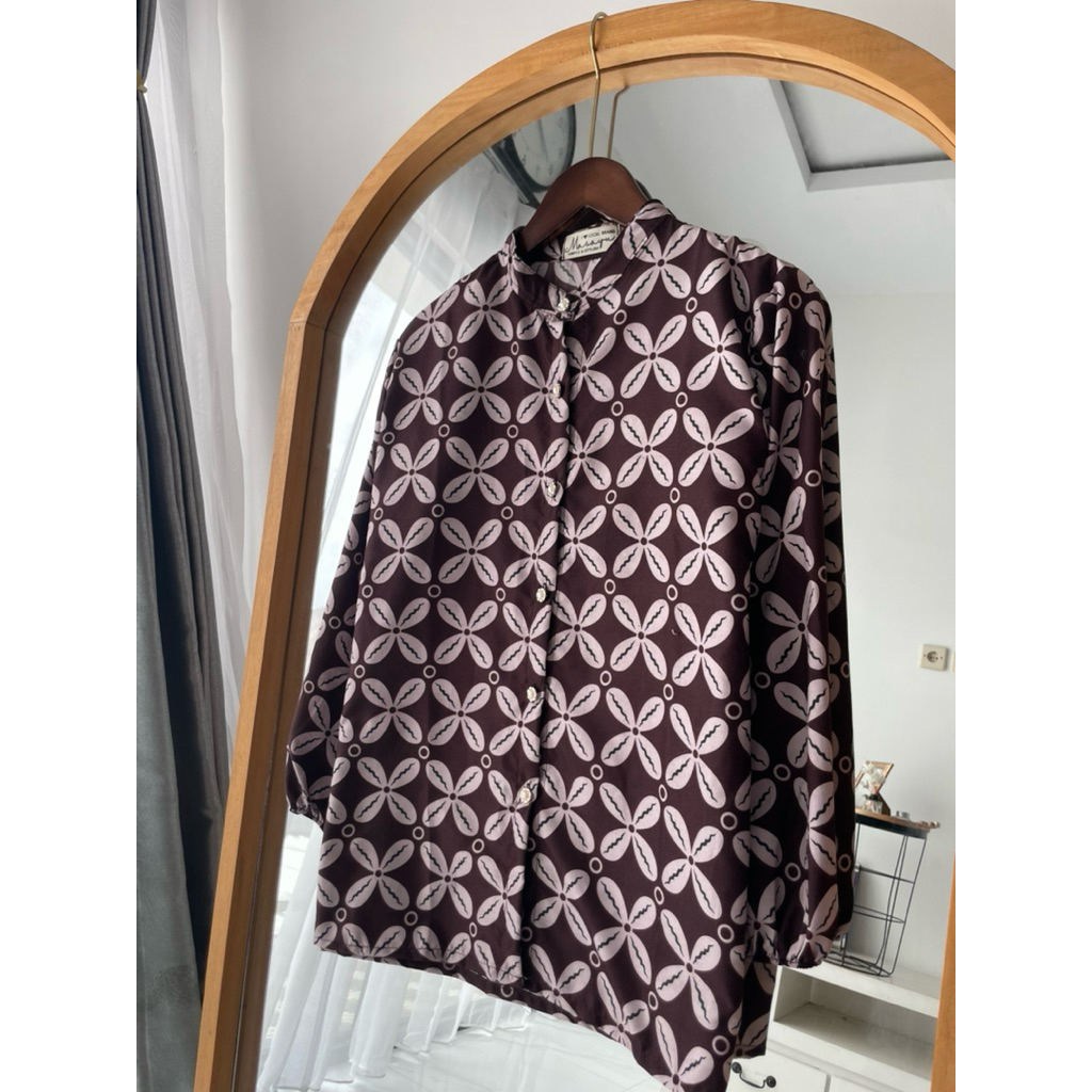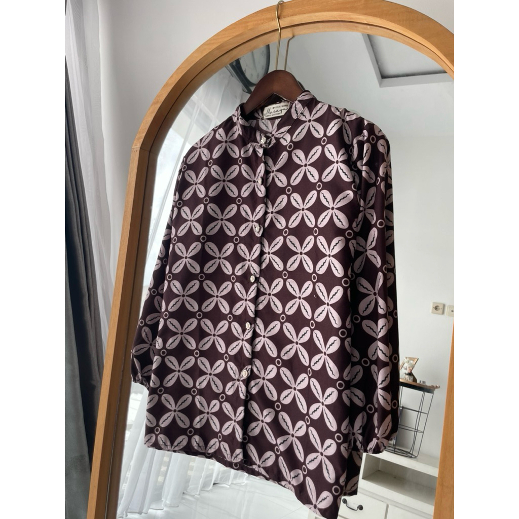 Blouse Batik Wanita Atasan Kyoto Coffee Tubruk Kawung Series