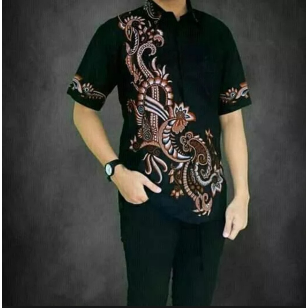 tey-17 Batik Pria ASJ SA HRB026 Kenongo Kemeja Tosca Pendek Pekalongan Padi M L Xl Sogan Tulis ::