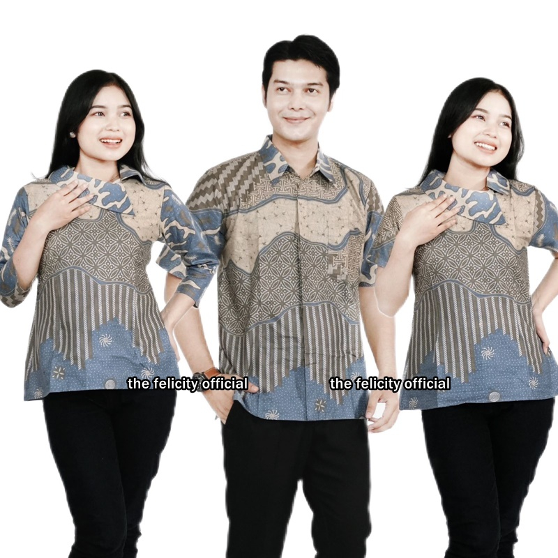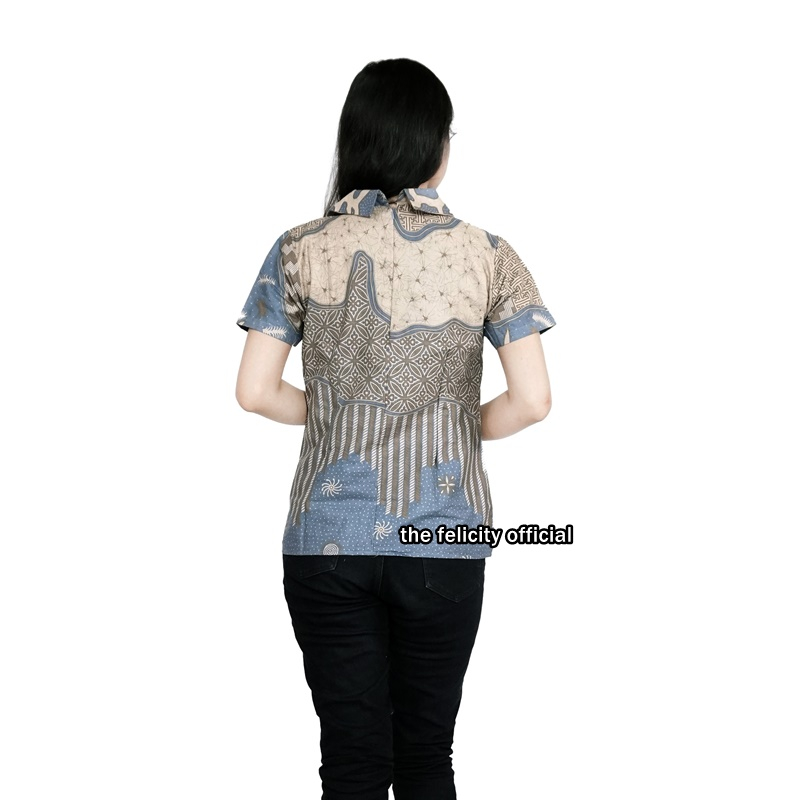 Blouse Batik Wanita Modern Berkerah Besar Batik Kantor Couple Seragam Batik Simple [ awan ]