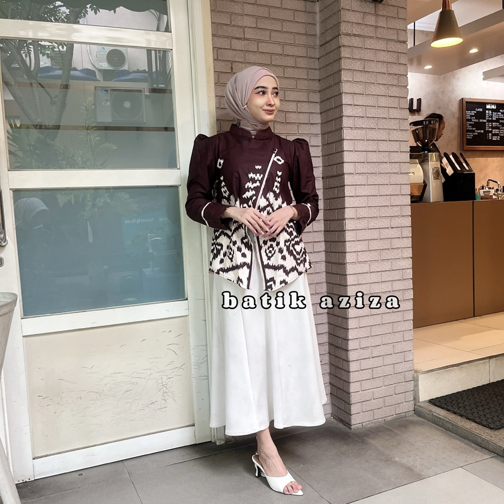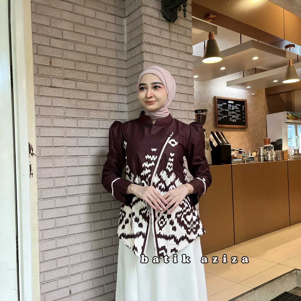 Atasan Batik Wanita Blus Janggan Motif Songket Muncak Kain Lebih Tebal
