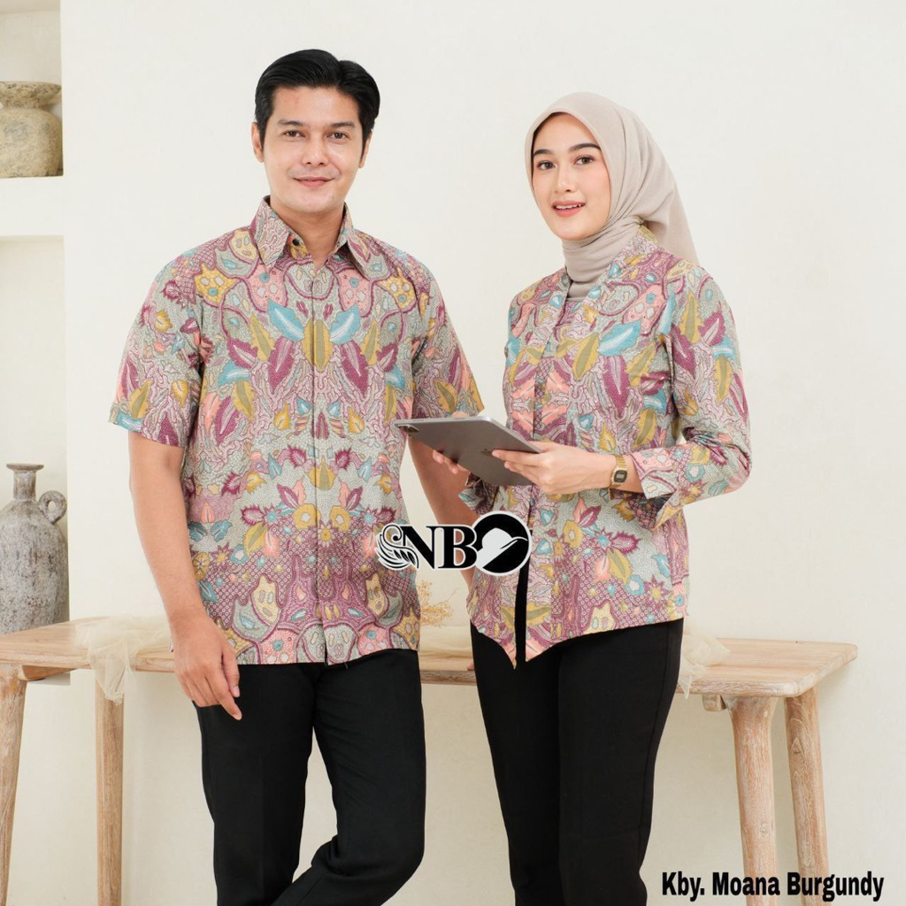 Atasan Baju Batik Couple Pasangan Pria Wanita Seragam Kerja Kantor Modern ASJ SA HRB026 Kenongo Kemeja Tosca Pendek Keki