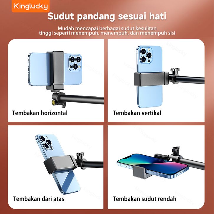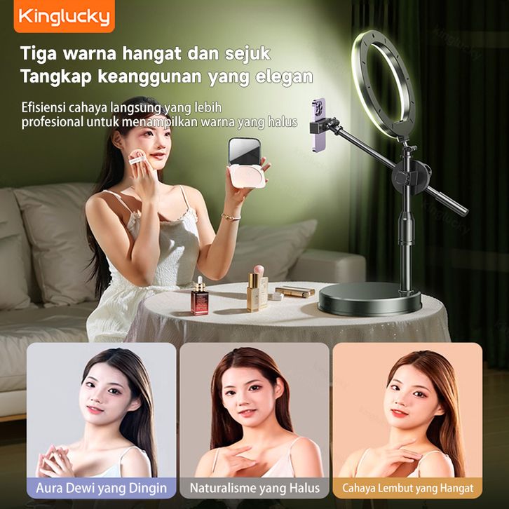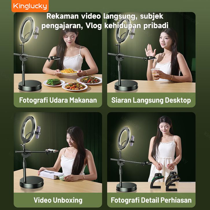 KINGLUCKY K5 Tri Overhead Stand Hp + Lampu Tri Meja Konten & Live Streaming