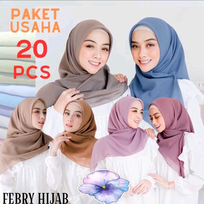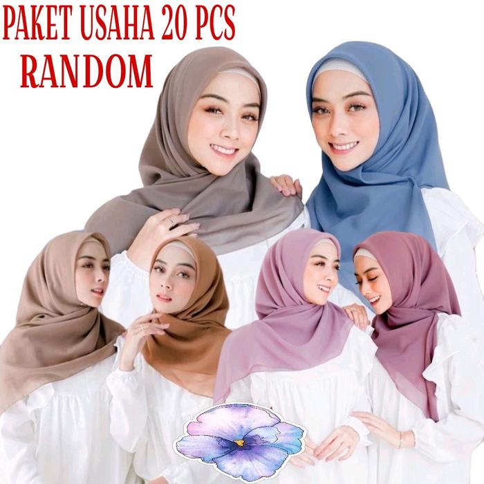 PAKET 20 PCS HIJAB BELLA SQUARE//SEGIEMPAT BELLA SQUARE/SEGIEMPAT POLYCATTON Polycotton Muslim Kerudung - RANDOM