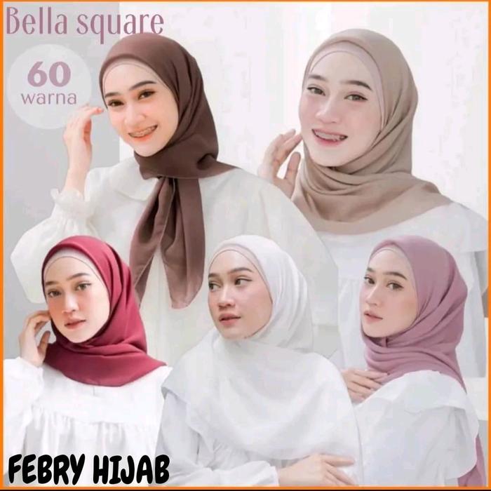 PAKET 6 PCS HIJAB BELLA SQUARE/SEGI EMPAT/BELLA SQUARE/POLY CATTON Jilbab Muslim - random