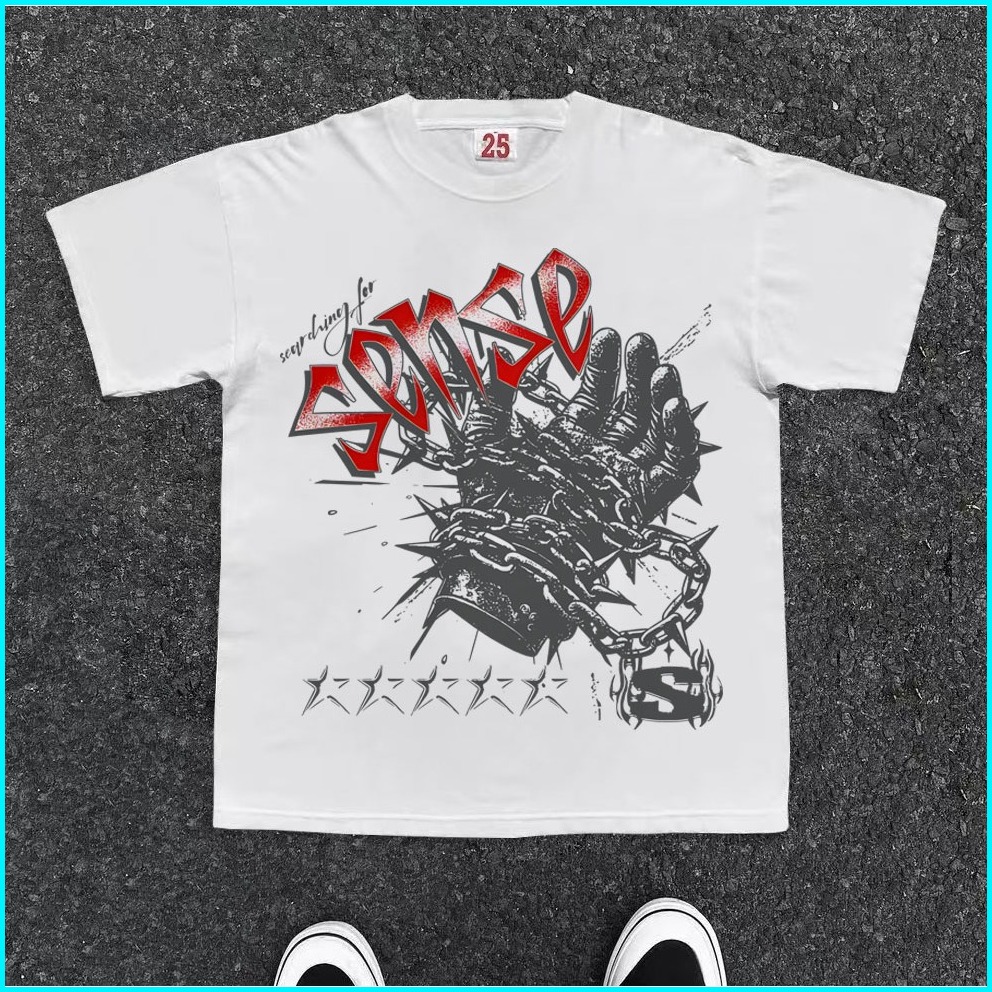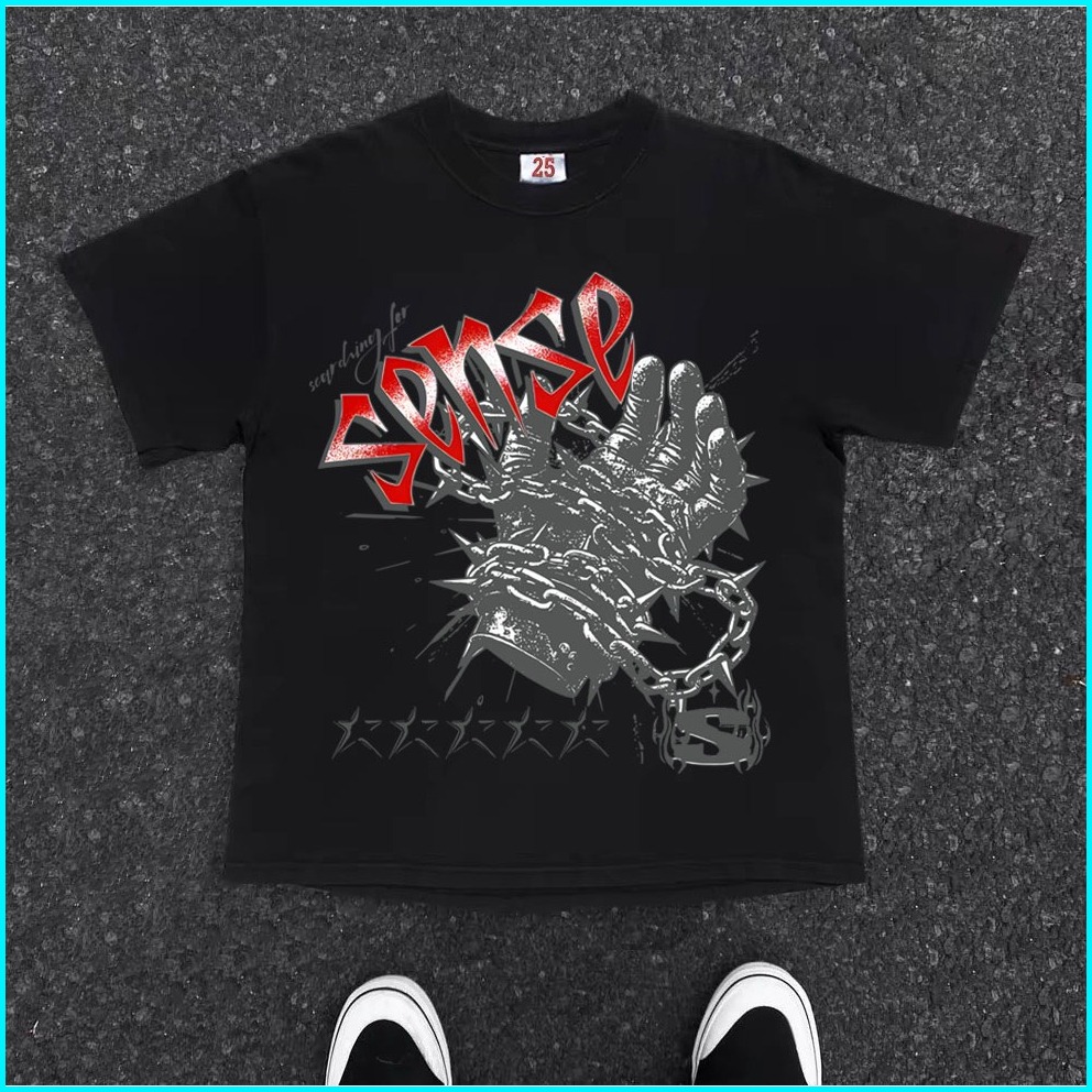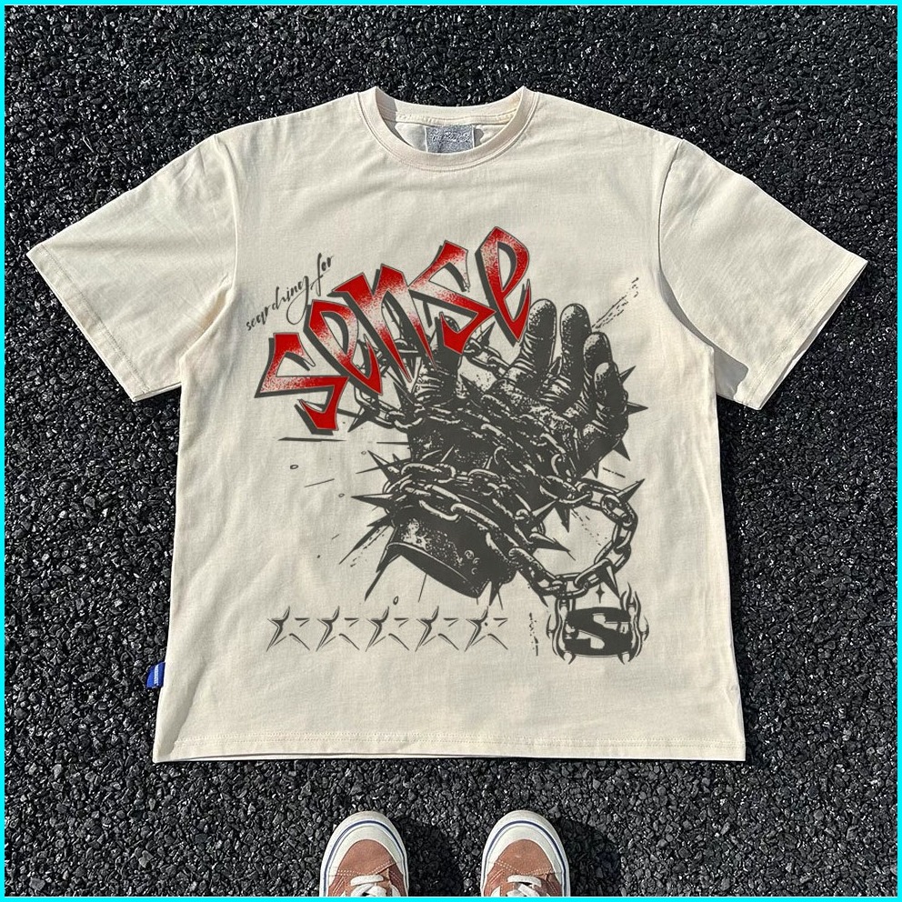 Boombap American Retro Style T-shirt Oversize Hand Of Desain Kaos Wanita Putih Kaos Pria Dan Wanita Street Style 100 Cot