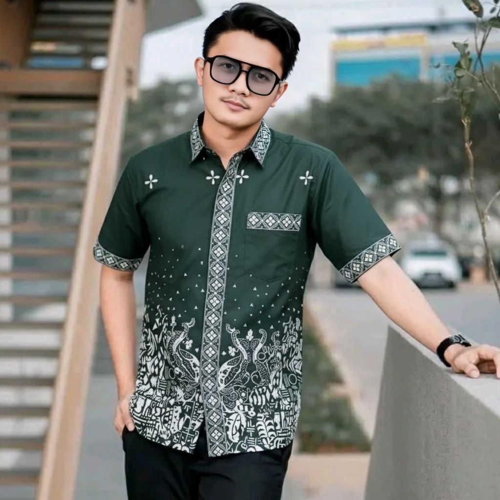 Baju batik pria lengan pendek terbaru MOTIF TERBARU size M L XL XXL/kemeja batik pria lengan pendek slim-fitting baju ka