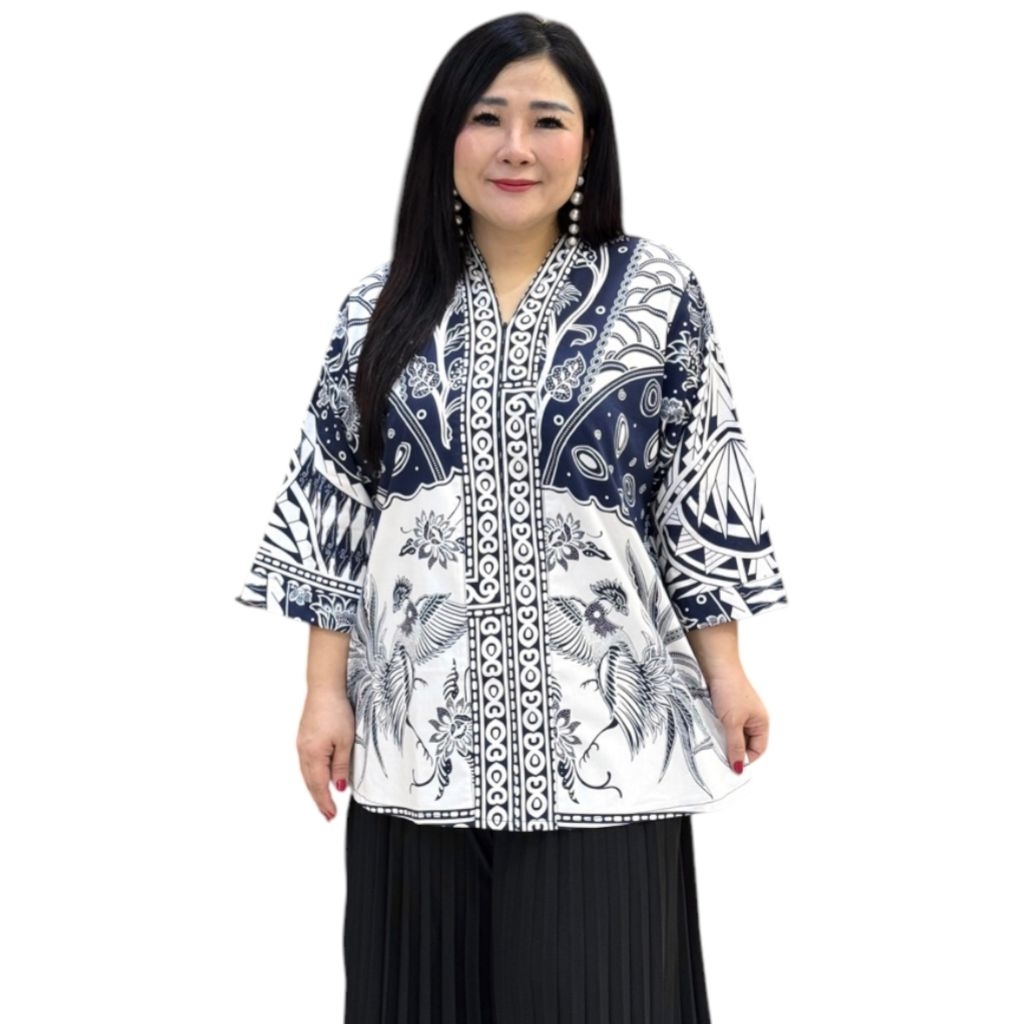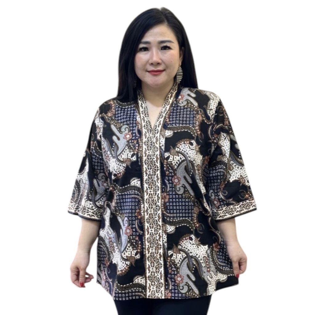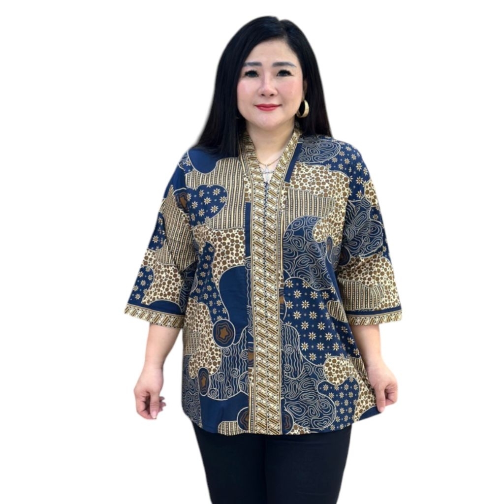 Baju Kebaya Batik Stretch Wanita Resleting Lengan Panjang Jumbo Ld 115-120 Cm / Kebaya Batik Wanita Bahan Katun Stretch