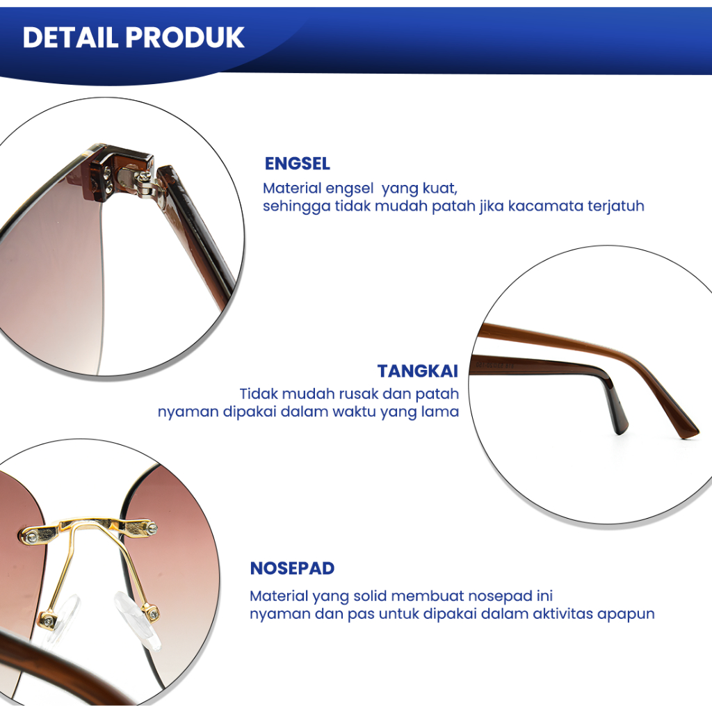 IOOI Eyewear - Kacamata Hitam Kotak Over Size Sunglasses Metal PC kacamata hitam wanita