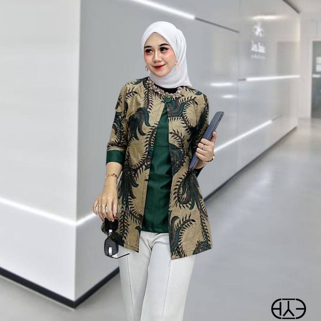 Blouse Atasan wanita Batik Kantoran Lengan 3/4 Vintage Bahan Katun Halus