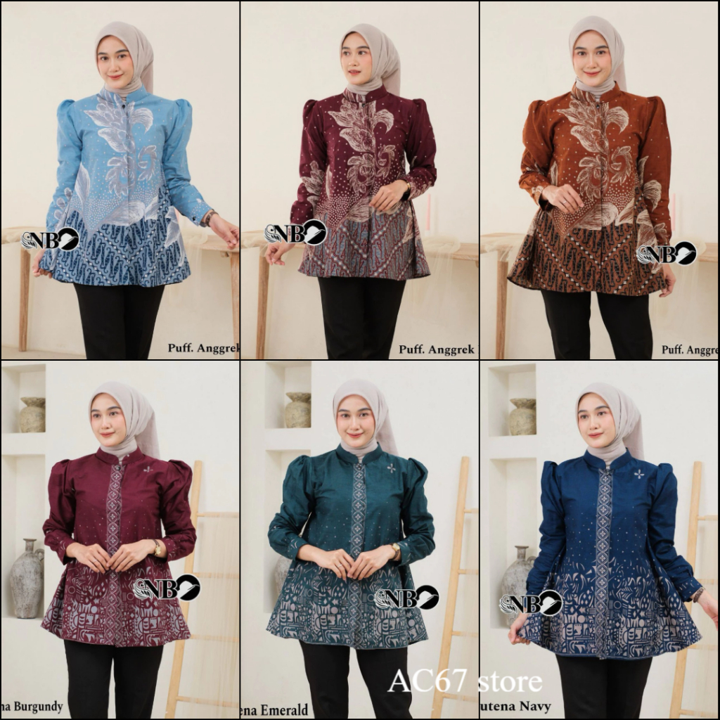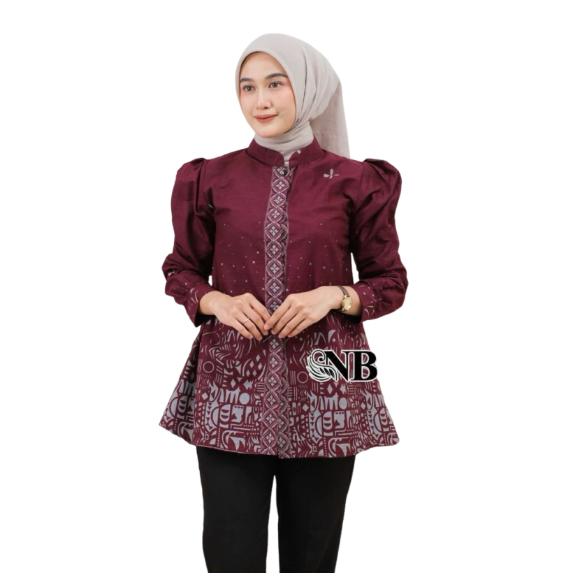 Atasan Wanita Batik Blouse Batik Mawar Lengan Balon Model Peplum Payung Kemeja Wanita Kekinian Jumbo
