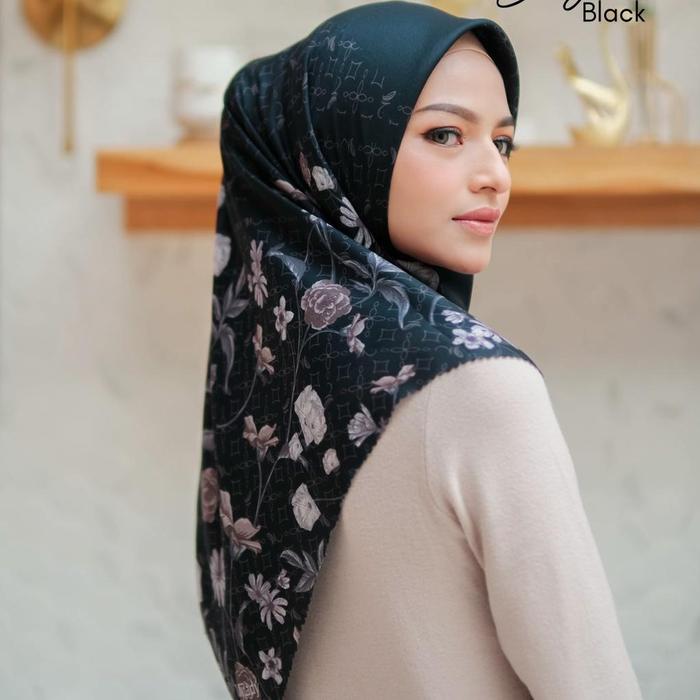 MYLADY HIJAB SANGRIA SERIES Basic Cantik Gold Logo Mewah Soft Tebal Voal Muslim Square Segi Kerudung - BLACK