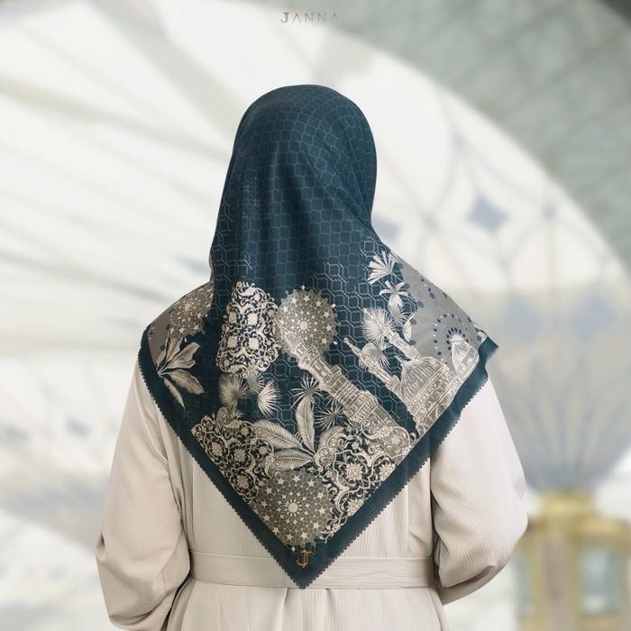 JANNA Mecca Series Hijab Motif Lasercut Segiempat Premium Voal Square Muslim Kerudung Logo Printing Mewah Nyaman - Asmar