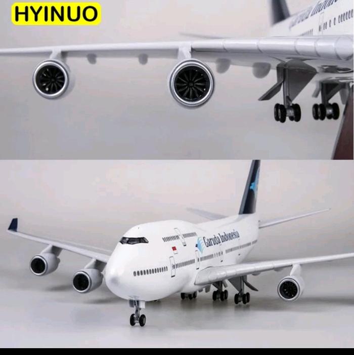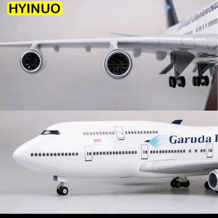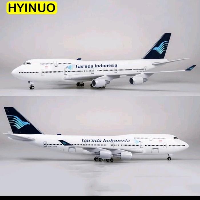 Miniatur Pesawat Garuda b747 ukuran 47 cm bahan Fiber ada roda