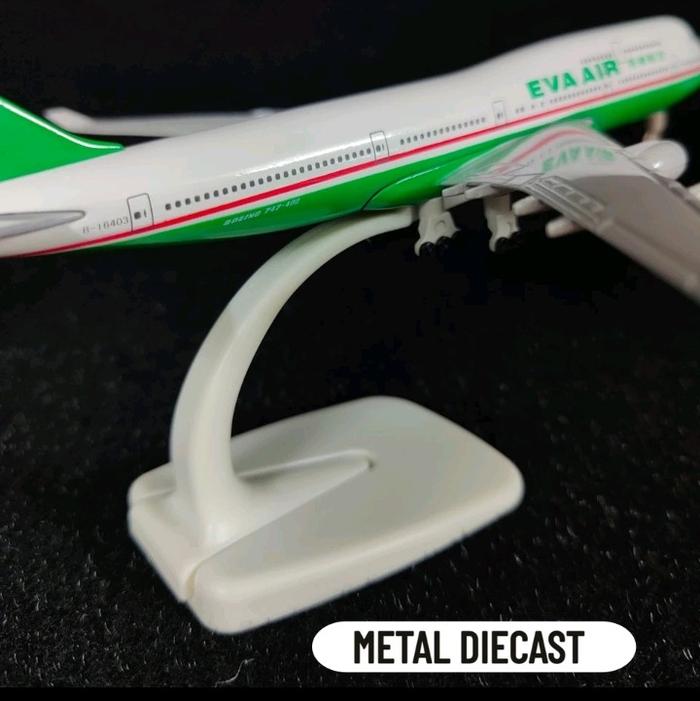 miniatur Diecast pesawat Eva air 20 cm ada roda ada dudukan