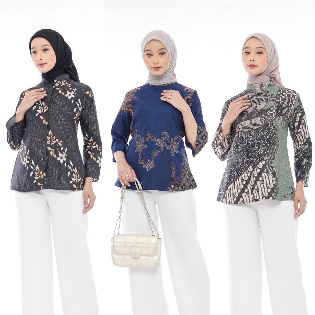 Atasan Batik Kerja Wanita Modern || Blouse Kemeja Seragam Kantor Murah Lengan Lonceng 3/4