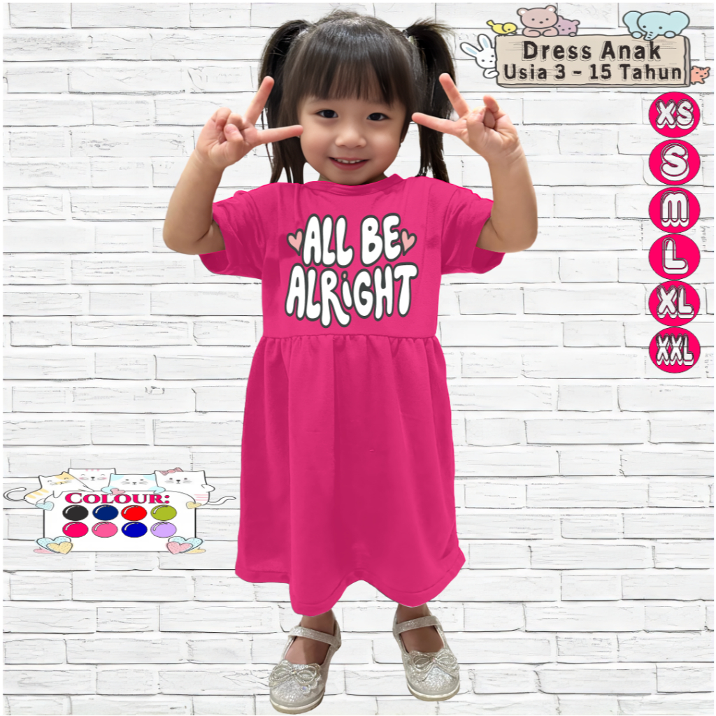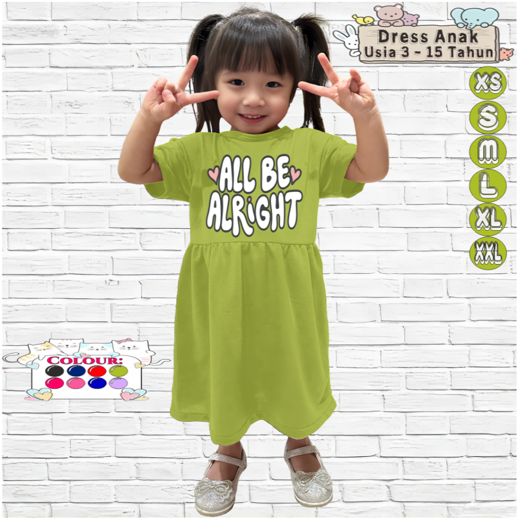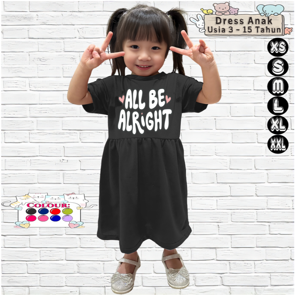 Baju Dress Anak Perempuan 3-15 Tahun Motif ALRIGHT