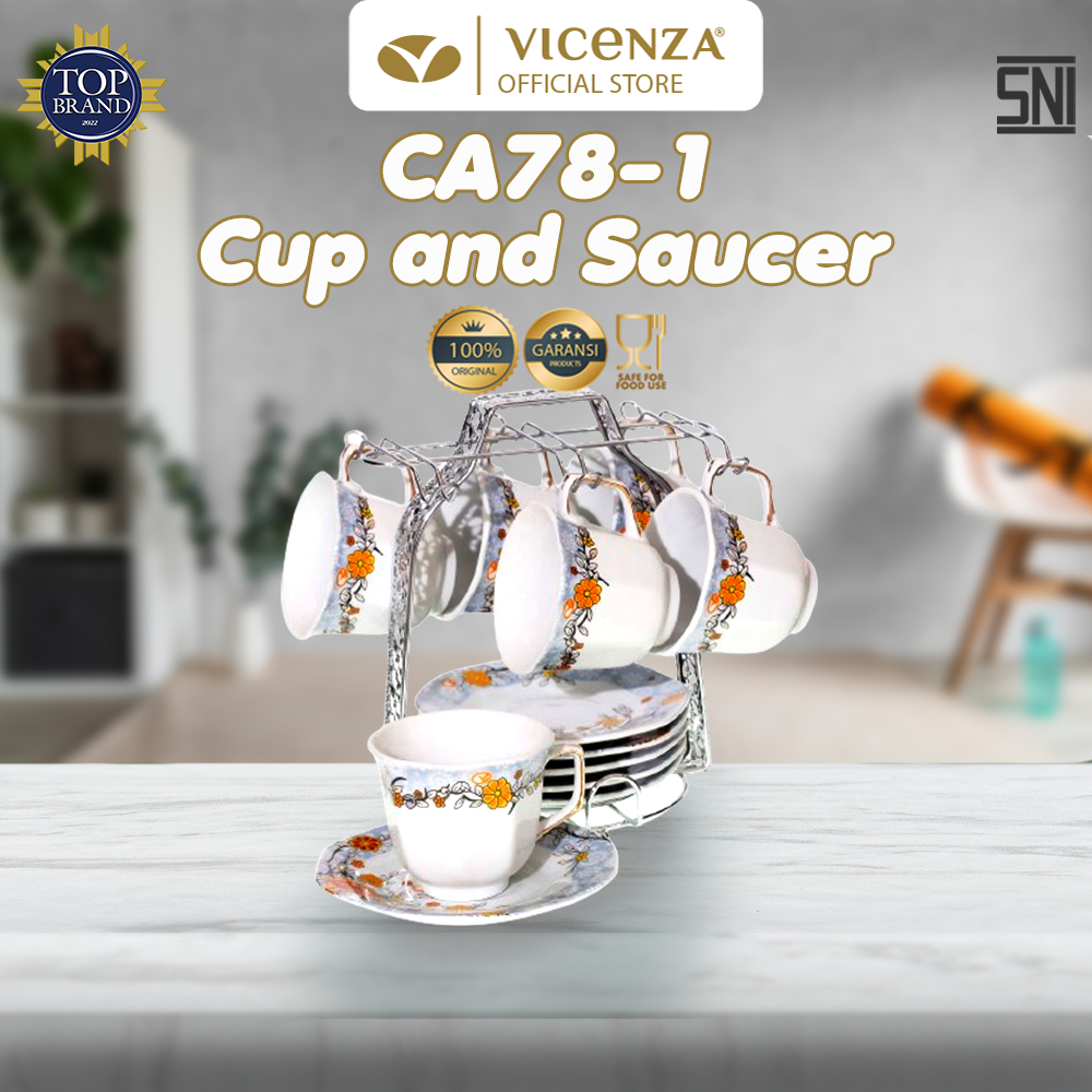 Vicenza Cangkir Set Porselen Segi Delapan CA78-1
