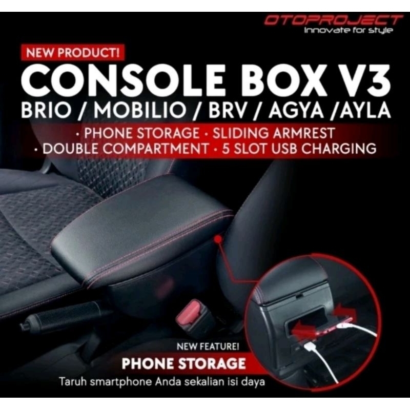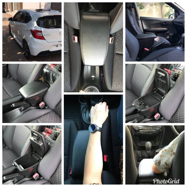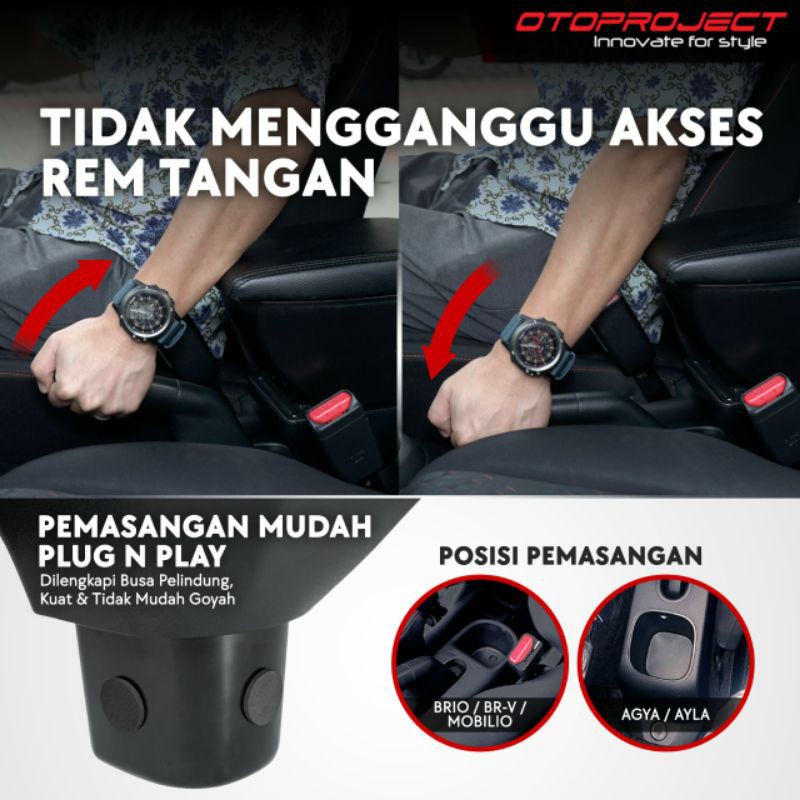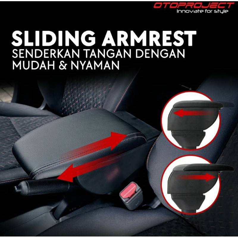 OTOPROJECT Console Box / Armrest tangan with usb hitam Honda Brio, BRV, Mobilio