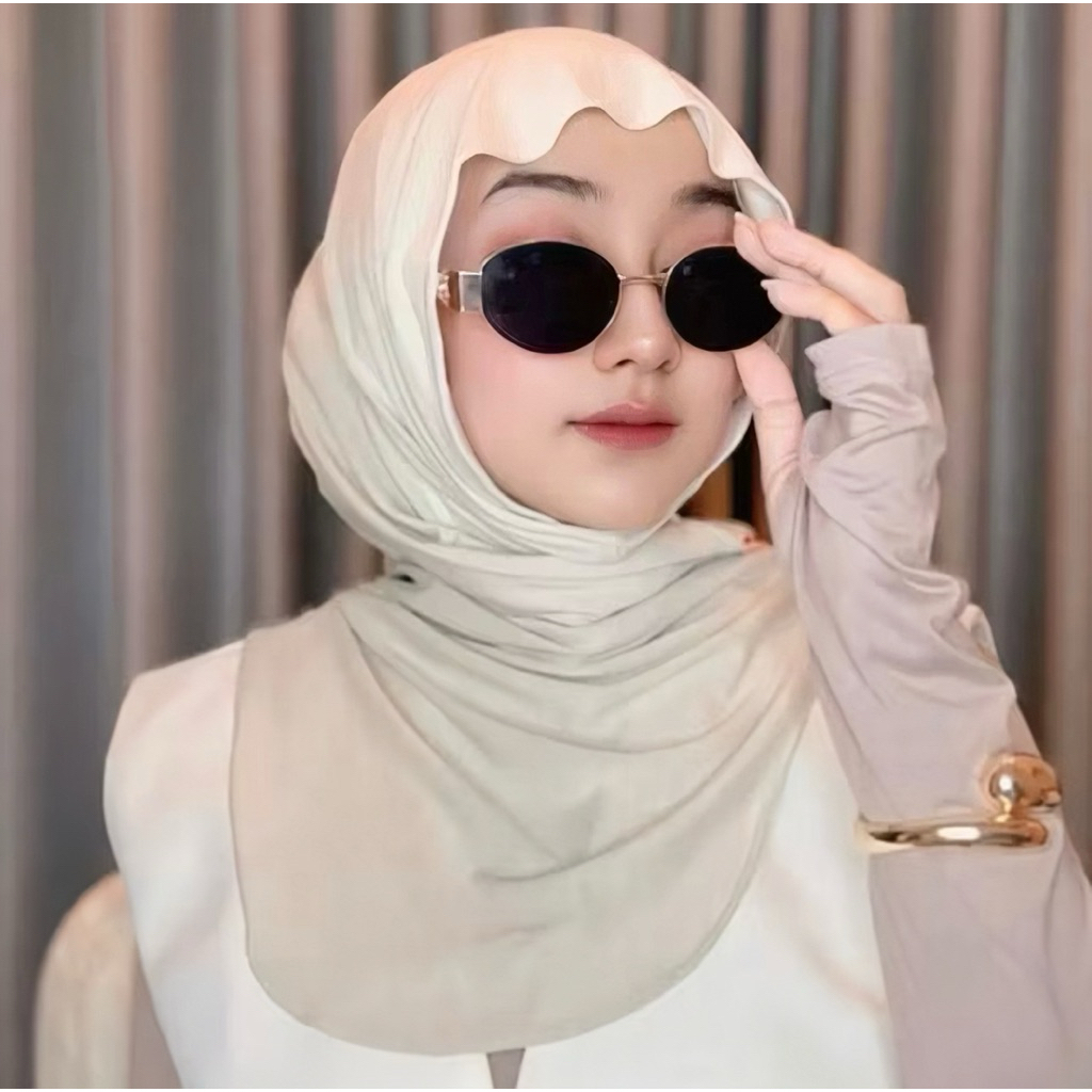 HIJAB INSTAN BERGO HUMA BAHAN JERSEY COOLTECH MELEYOT PASHMINA T0P BISA EMPAT MODEL SIZE M