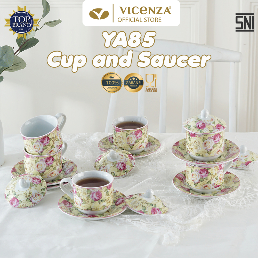 Vicenza Tea Set - Cangkir Lepek dengan Tutup YA85 Motif