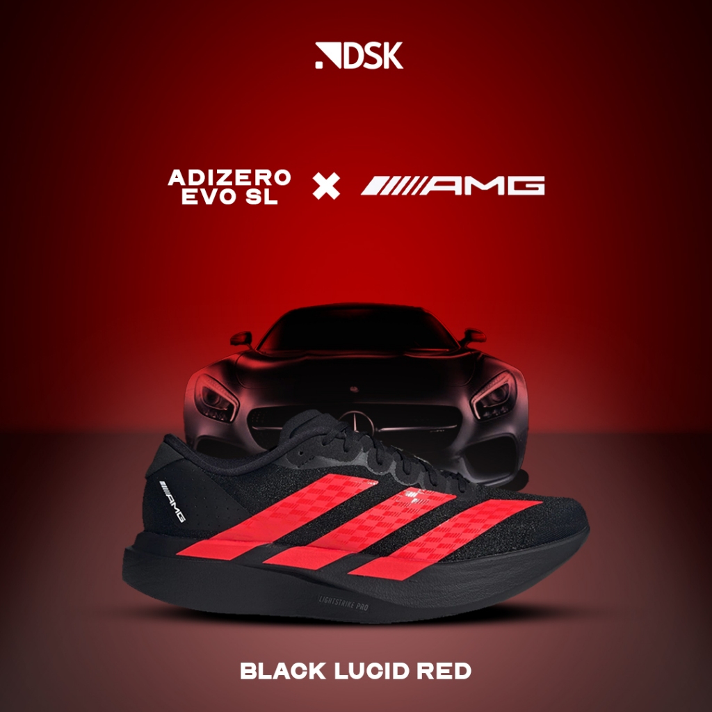 New and Limited Adidas Adizero EVO SL X AMG Black Lucid Red Sepatu Running Sneakers Training Sepatu Lari Sepatu Olahrag