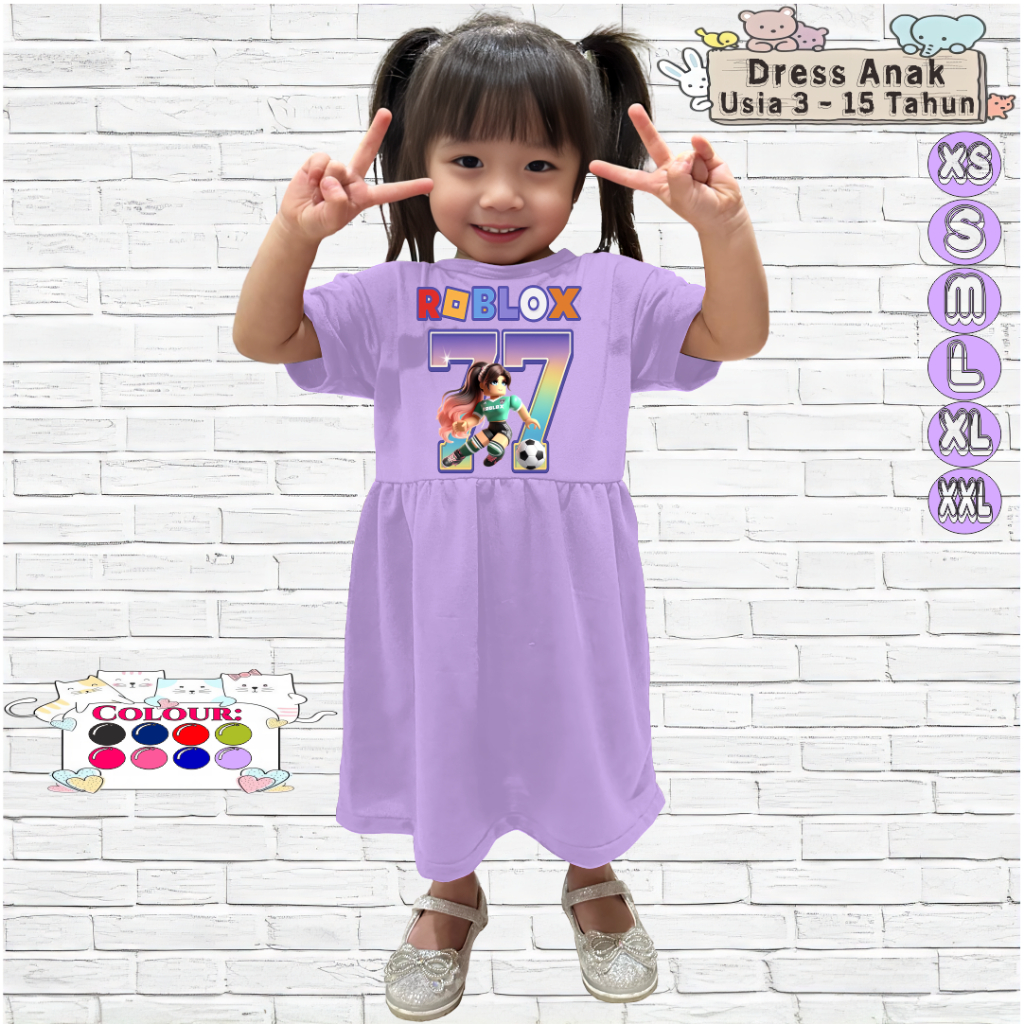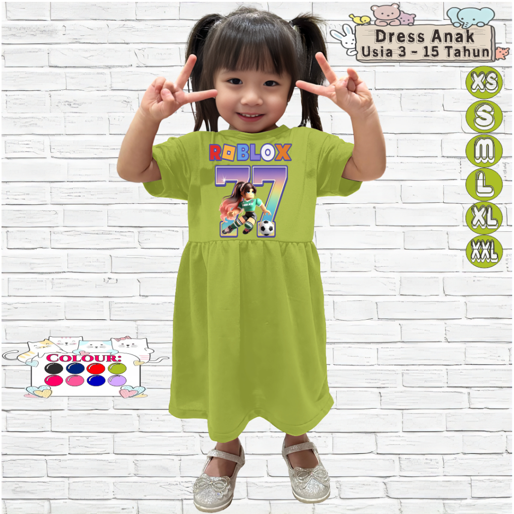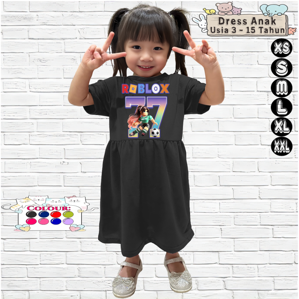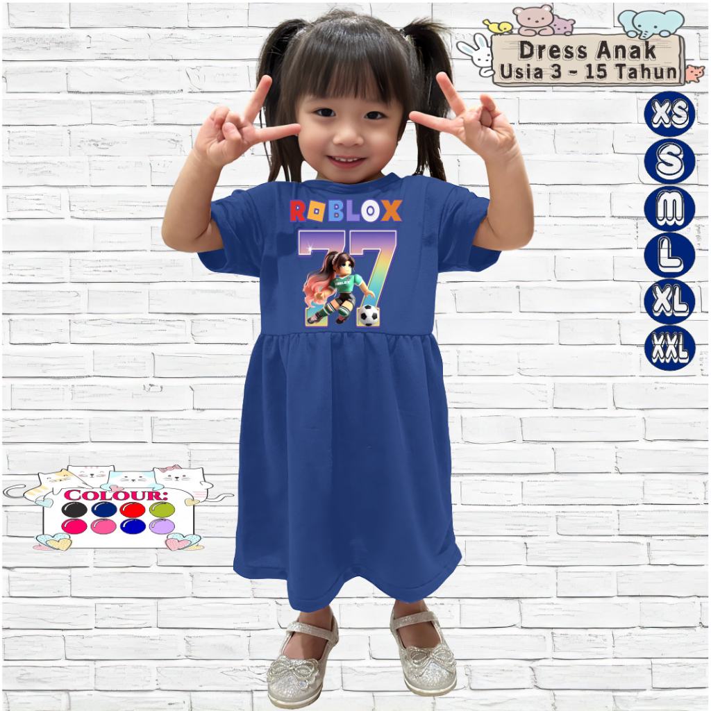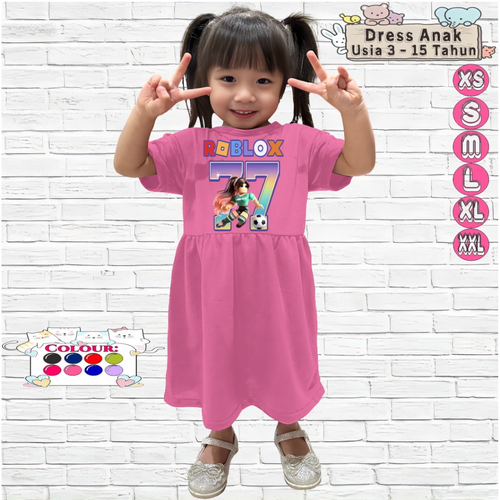 Baju Dress Anak Perempuan 3-15 Tahun Motif ROBLOX BALL 77