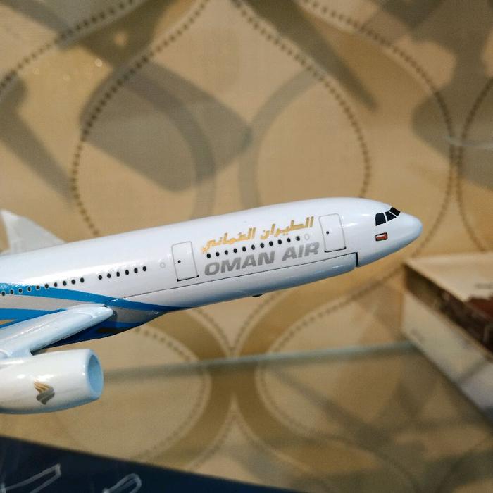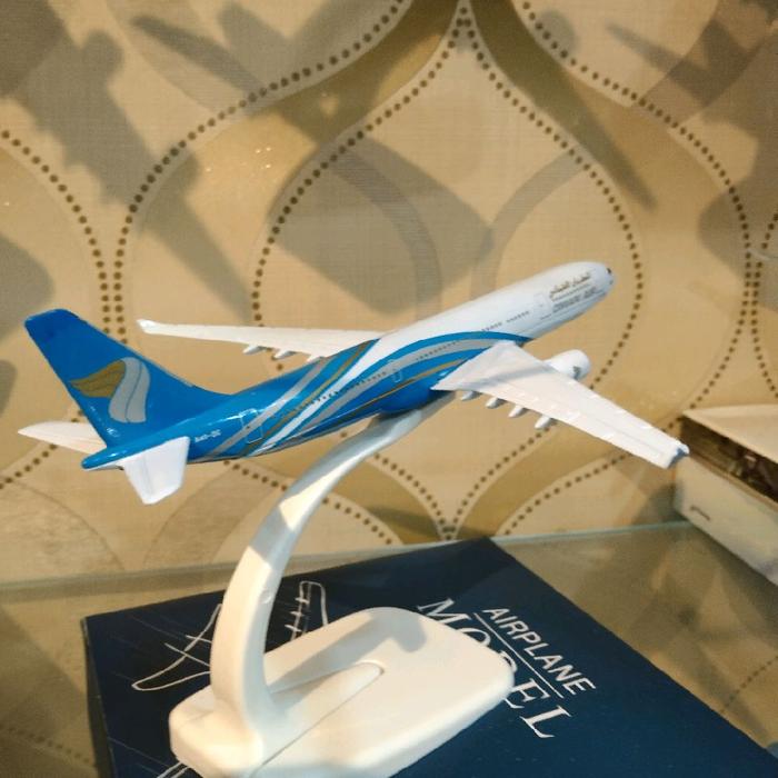 miniatur Dicky pesawat Oman air Airbus 330 panjang 16 cm bahan full besi dapat dudukan