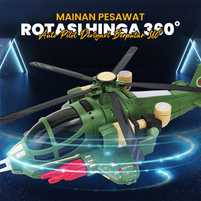 MINISTAR Pesawat Helikopter Tempur Berputar 360° Dengan Audio LED dan Sayap Terbuka Mainan Anak