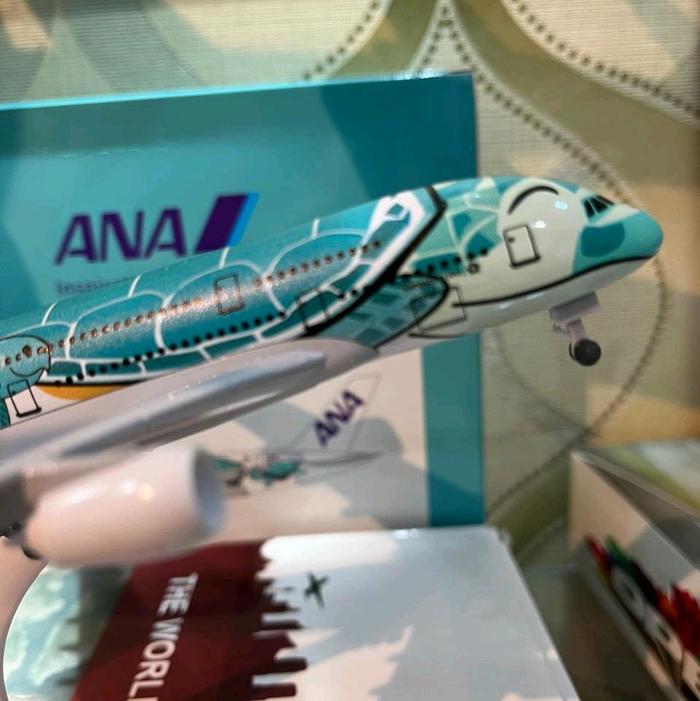 miniatur pesawat ANA Hijau kura kura a380 800 panjang 20 cm ada roda ada dudukan