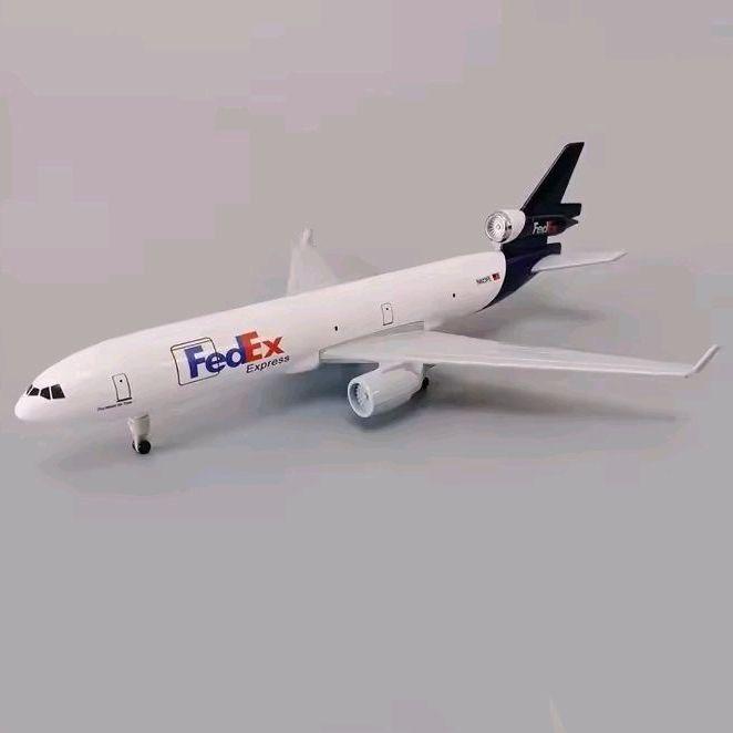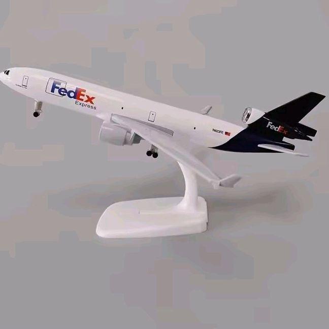 miniatur diecast pesawat MD 11 Fedex panjang 20 cm bahan full besi ada roda ada dudukan