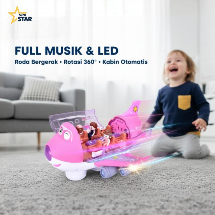 MINISTAR Mainan Edukasi Visual dan Motorik Pesawat Terbang Berputar 360° Dengan Sensor Audio dan LED Mainan Anak