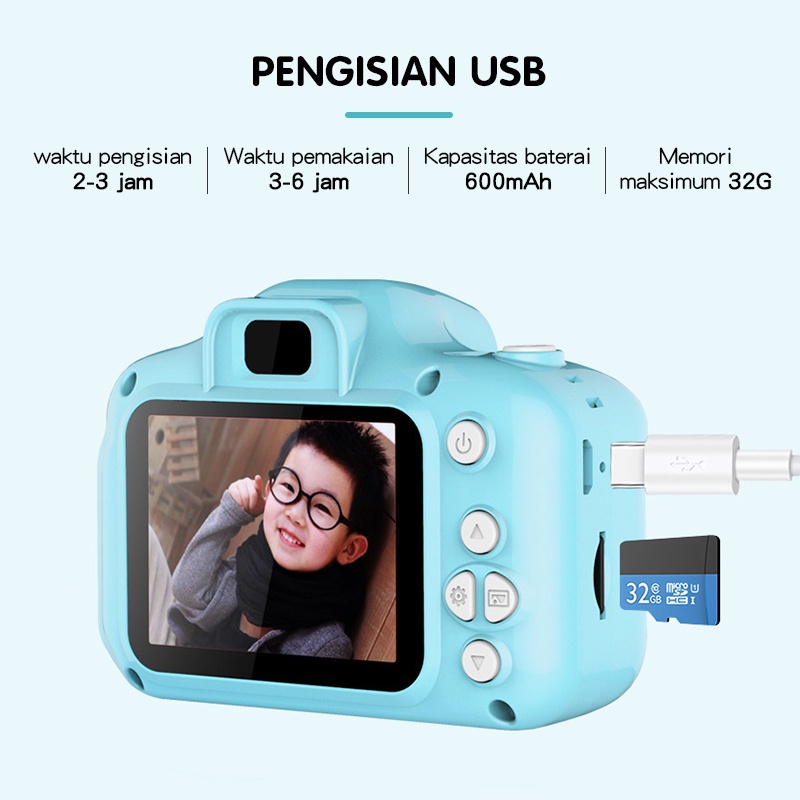 LEE mainan kamera anak Kamera Digital Mini Anak | DSLR Mainan Foto Video| Kids Action Camera Digital USB 2.0 IPS 1300W piksel