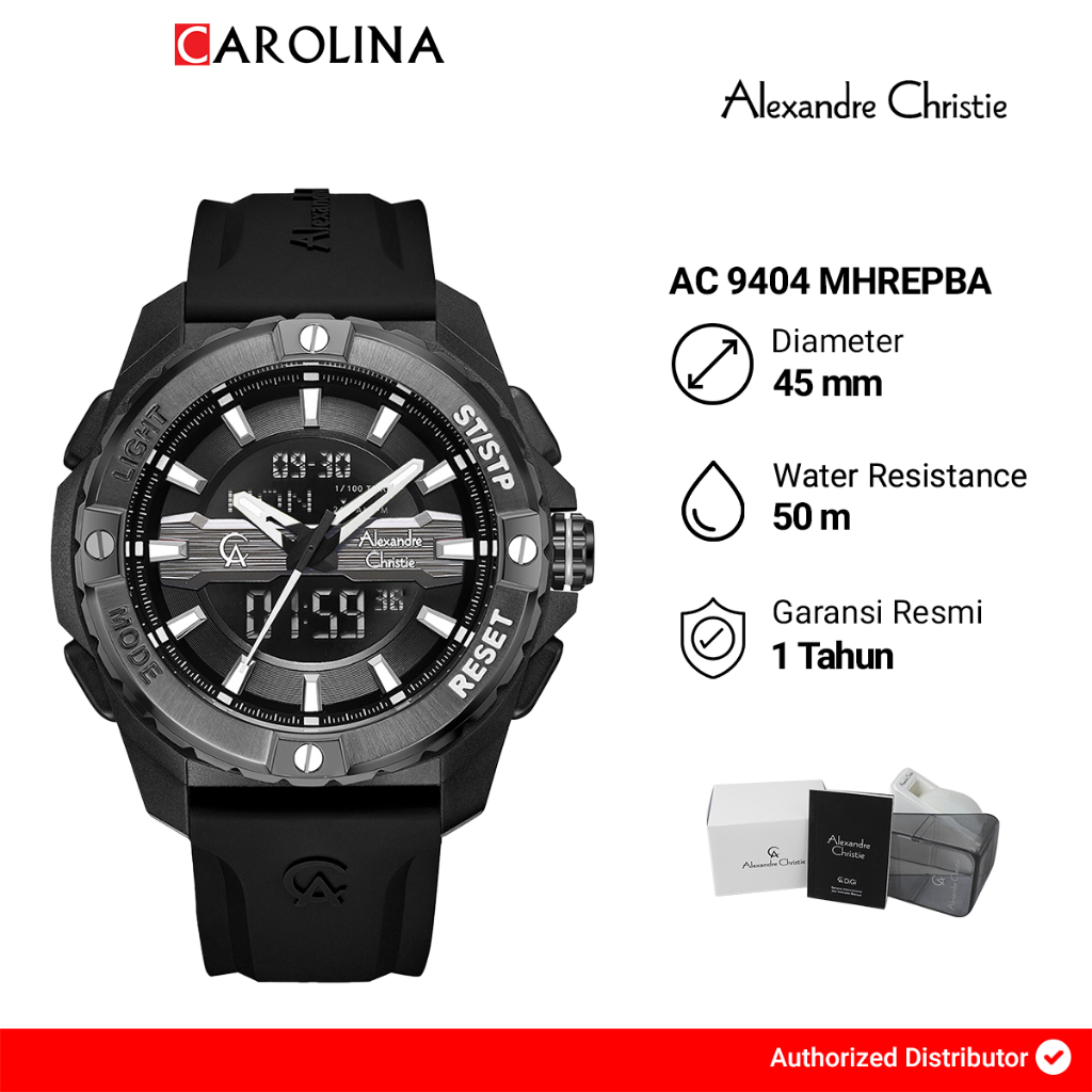 JAM TANGAN PRIA ALEXANDRE CHRISTIE CLASSIC STEEL AC 9404 MHREPBARE DIGITAL ANALOG RUBBER STRAP TERBARU TANPA DP