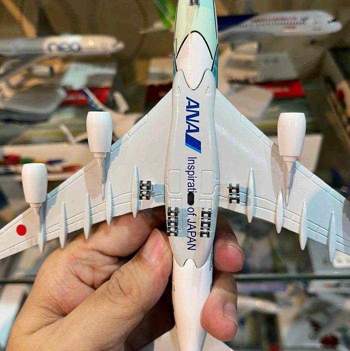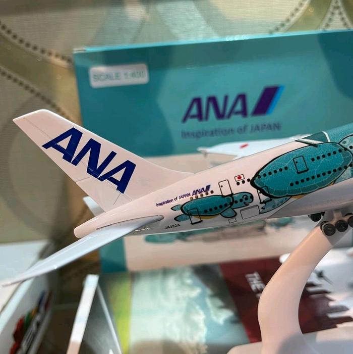 miniatur pesawat ANA Hijau kura kura a380 800 panjang 20 cm ada roda ada dudukan