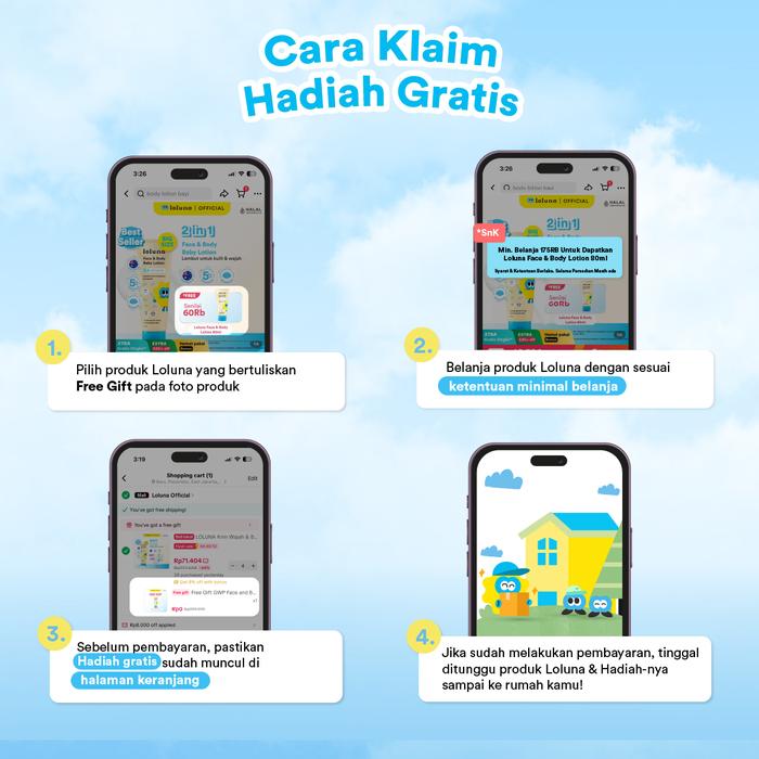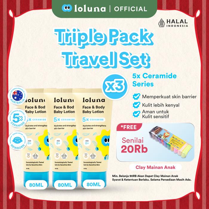 Loluna Face & Body Baby Lotion 3x80ml - Losion Muka dan Badan Bayi dan Anak / Losion untuk Newborn / 5x Ceramide - 1